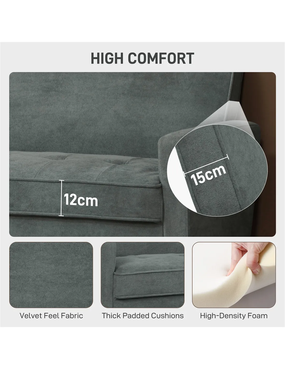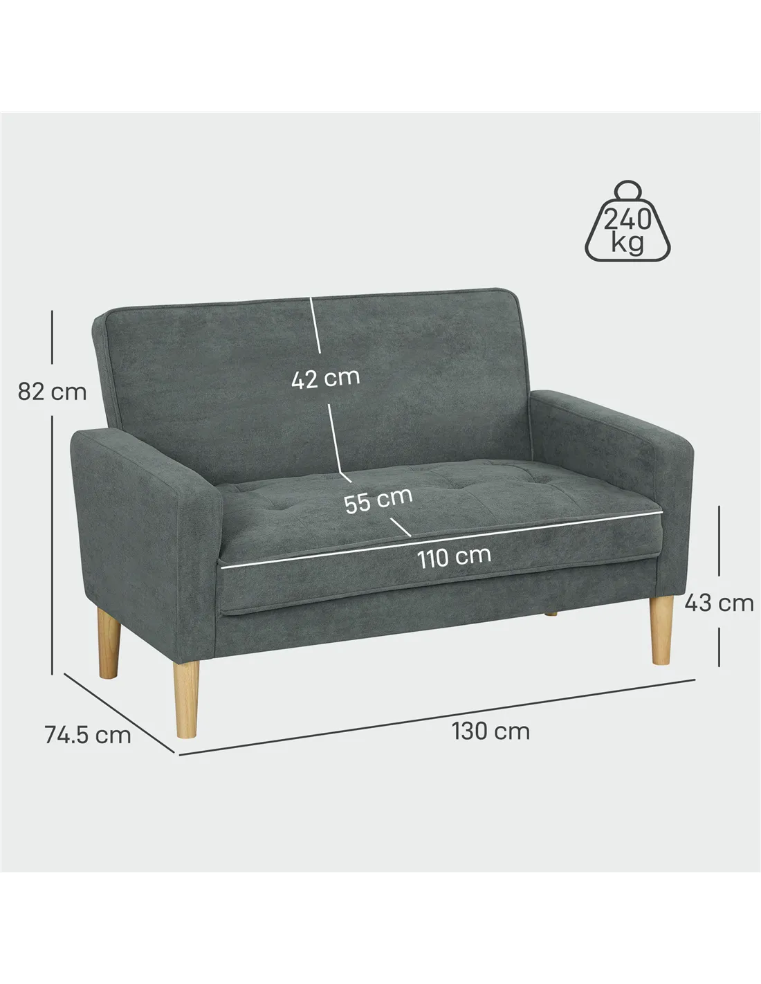 Discover the HOMCOM Two-Seater Velvet-Feel Sofa in Grey, designed for comfort and style in any UK home. This compact sofa features soft velvet-feel upholstery, providing a luxurious touch. It offers lasting support with robust S-springs and high-density foam filling, ensuring it retains shape after use. Solid wooden legs provide strong stability, complemented by anti-slip foot pads that protect your flooring from marks. The tufted design adds a subtle, elegant detail to your living space. Measuring 130W x 74.5D x 82H cm, this two-seater sofa fits easily into various room layouts. Its robust construction supports a total weight capacity of 240 kg, making it a practical and reliable choice from FastDaddy. This grey velvet-feel sofa arrives ready for assembly, bringing comfort and contemporary design home.