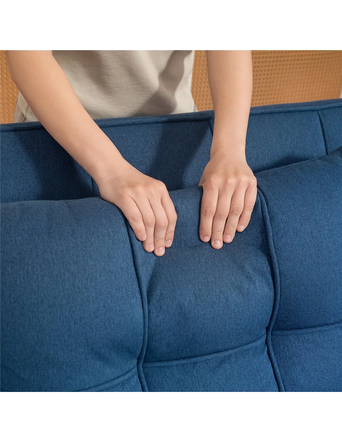 - A: The sofa bed features high-density foam filling for comfort and shape retention, along with a robust steel frame for a strong, supportive core. Included pillows provide additional comfort.