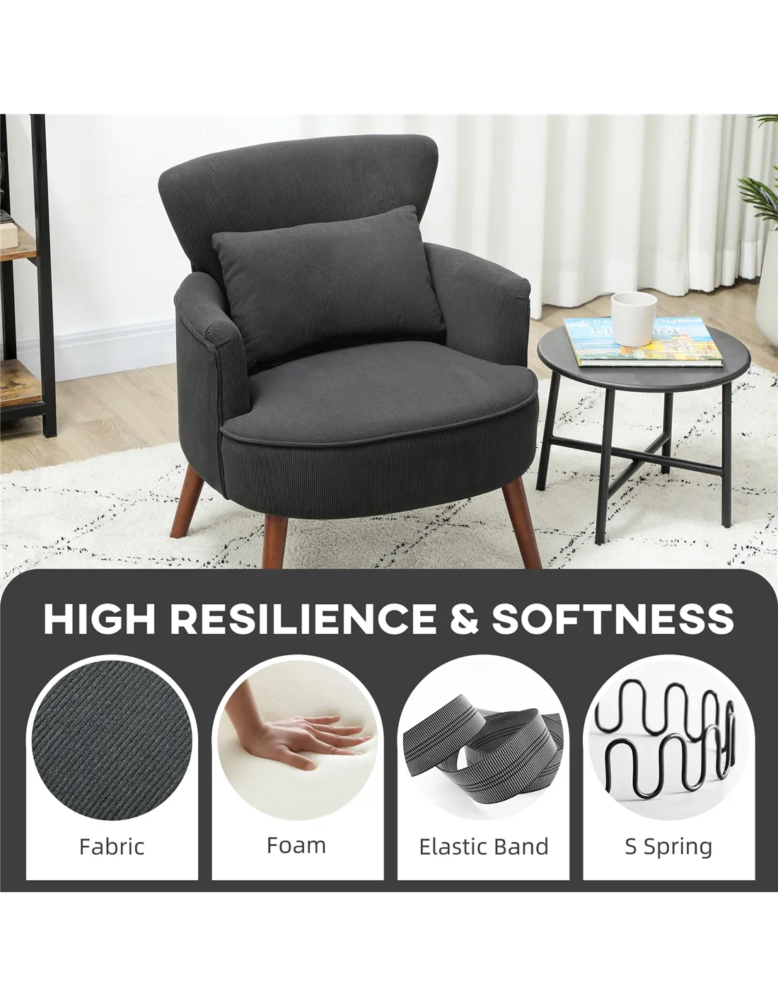 HOMCOM Corduroy Retro Accent Chair - Black