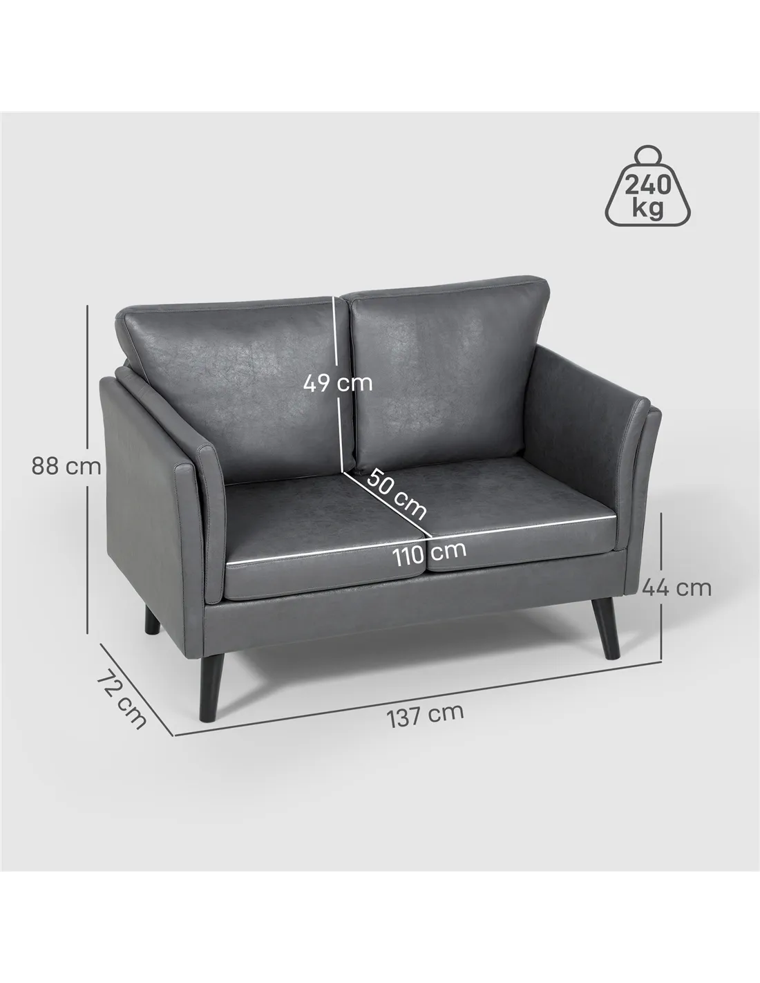HOMCOM Two-Seater Leathaire Sofa - Grey