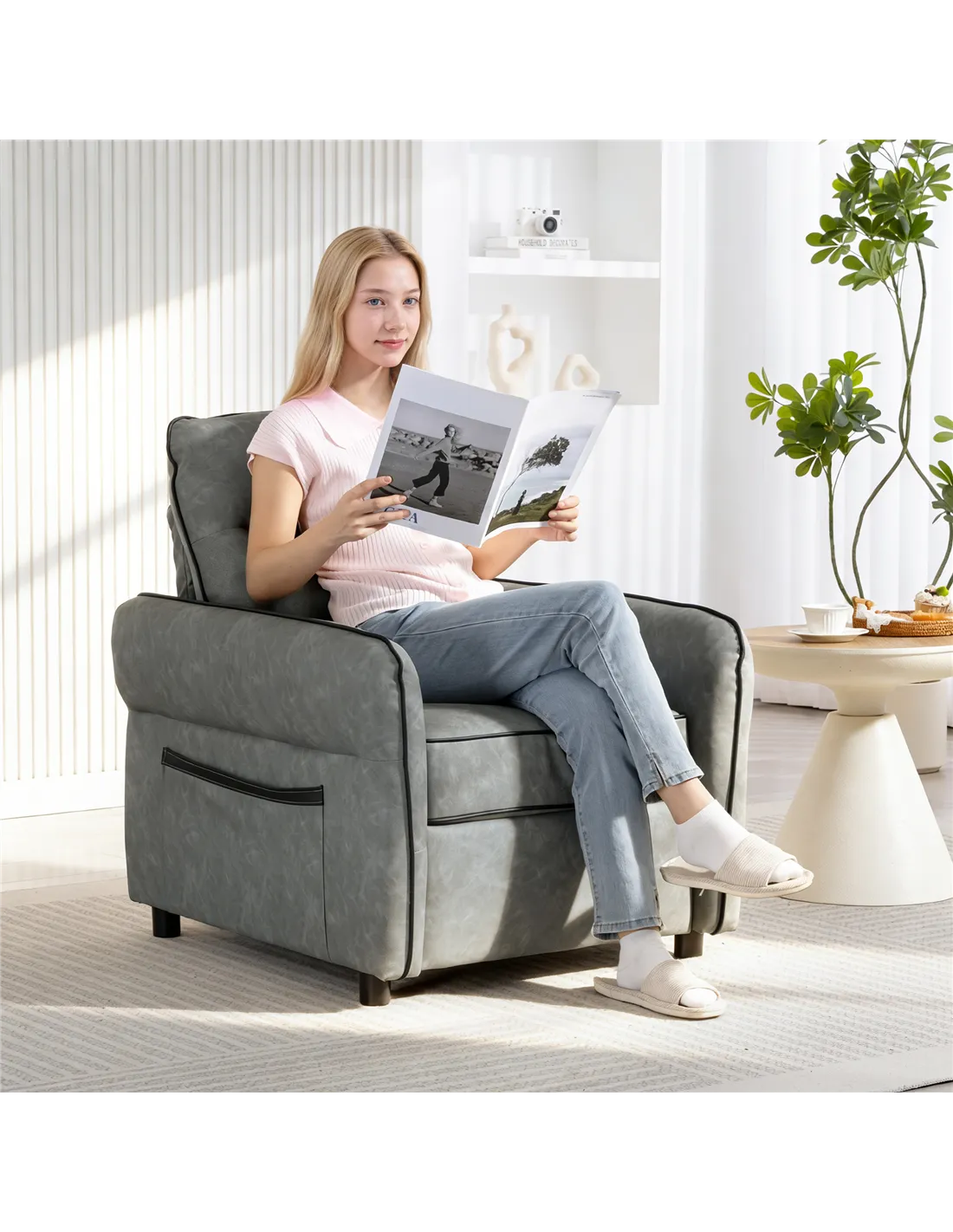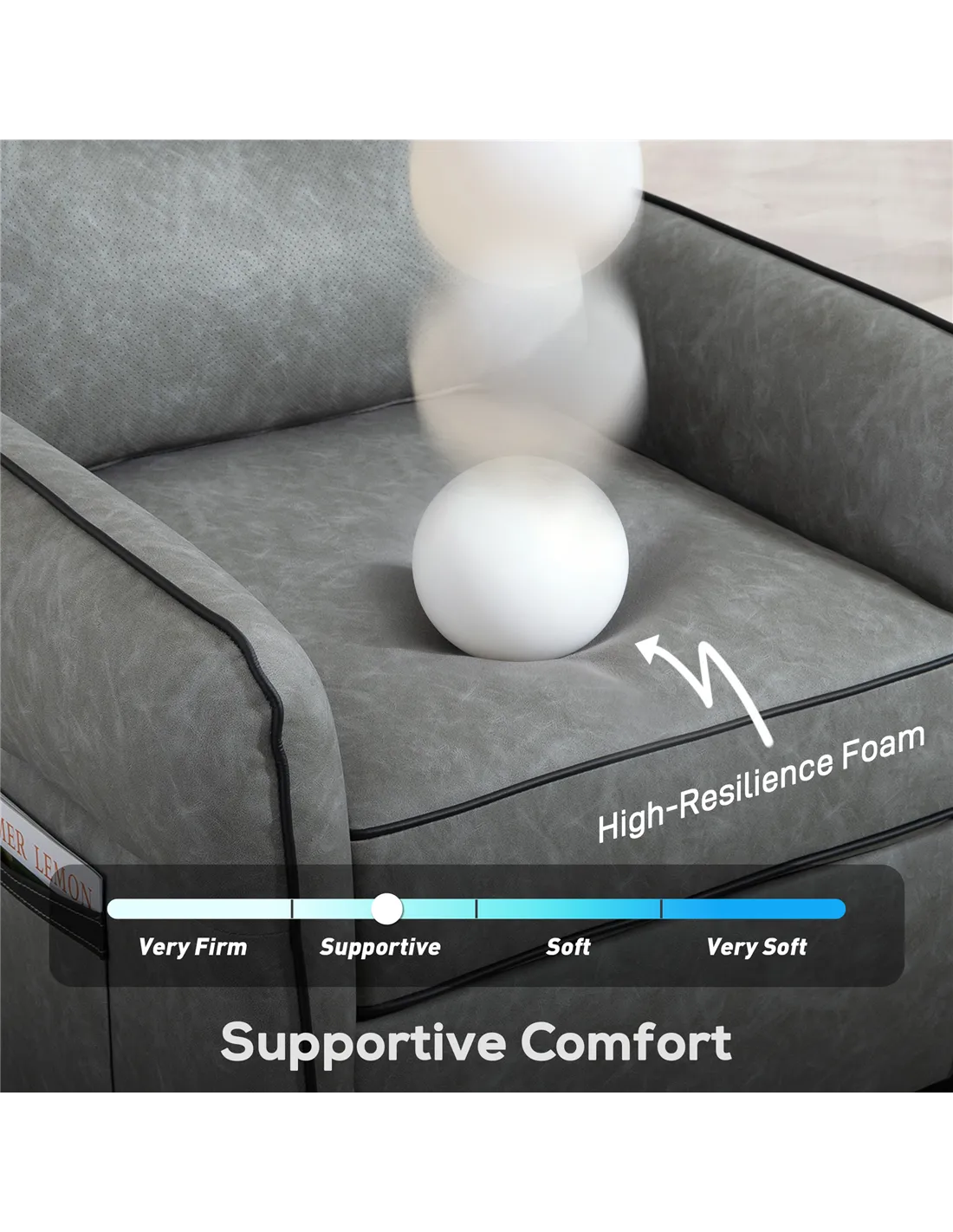 Introduce sophisticated comfort into your living space with the HOMCOM Accent Chair. This grey faux leather armchair combines minimalist design with practical features, fitting seamlessly into diverse home aesthetics. Its generous seat, measuring 56 cm wide and deep, offers ample room to relax. Experience lasting comfort from thick foam padding, supported by S-springs and elastic bands engineered to retain shape. The breathable, easy-care faux leather upholstery, accented with stylish black piping, maintains its appearance effortlessly. Practical side pockets provide convenient storage for magazines or your remote control. Constructed with a stable frame, anti-slip feet, and fire-retardant materials, this armchair prioritises safety and supports up to 120 kg. It delivers durable style and everyday relaxation for your home.