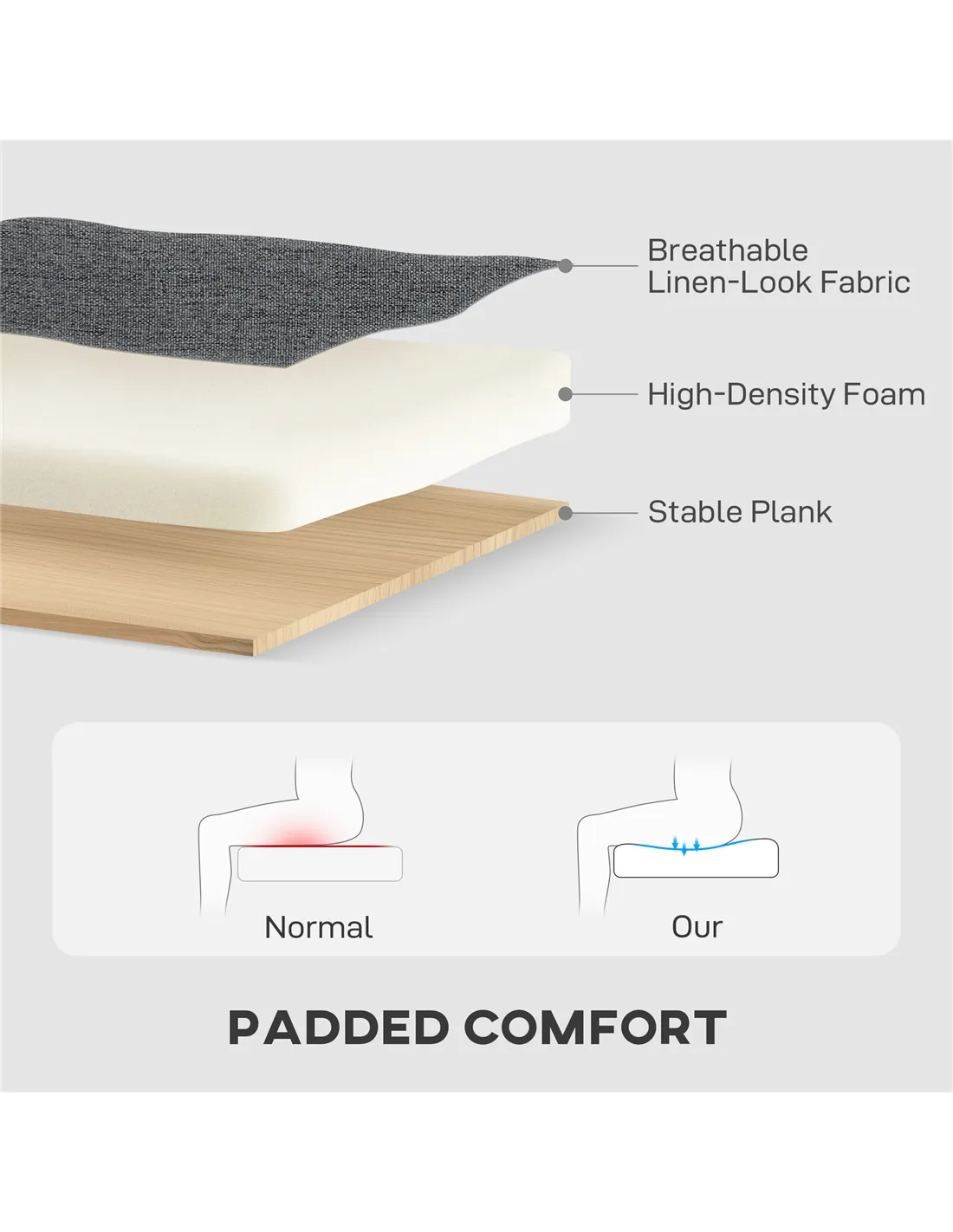 - Material: Linen (100% Polyester), Foam, Eucalyptus Wood, Metal