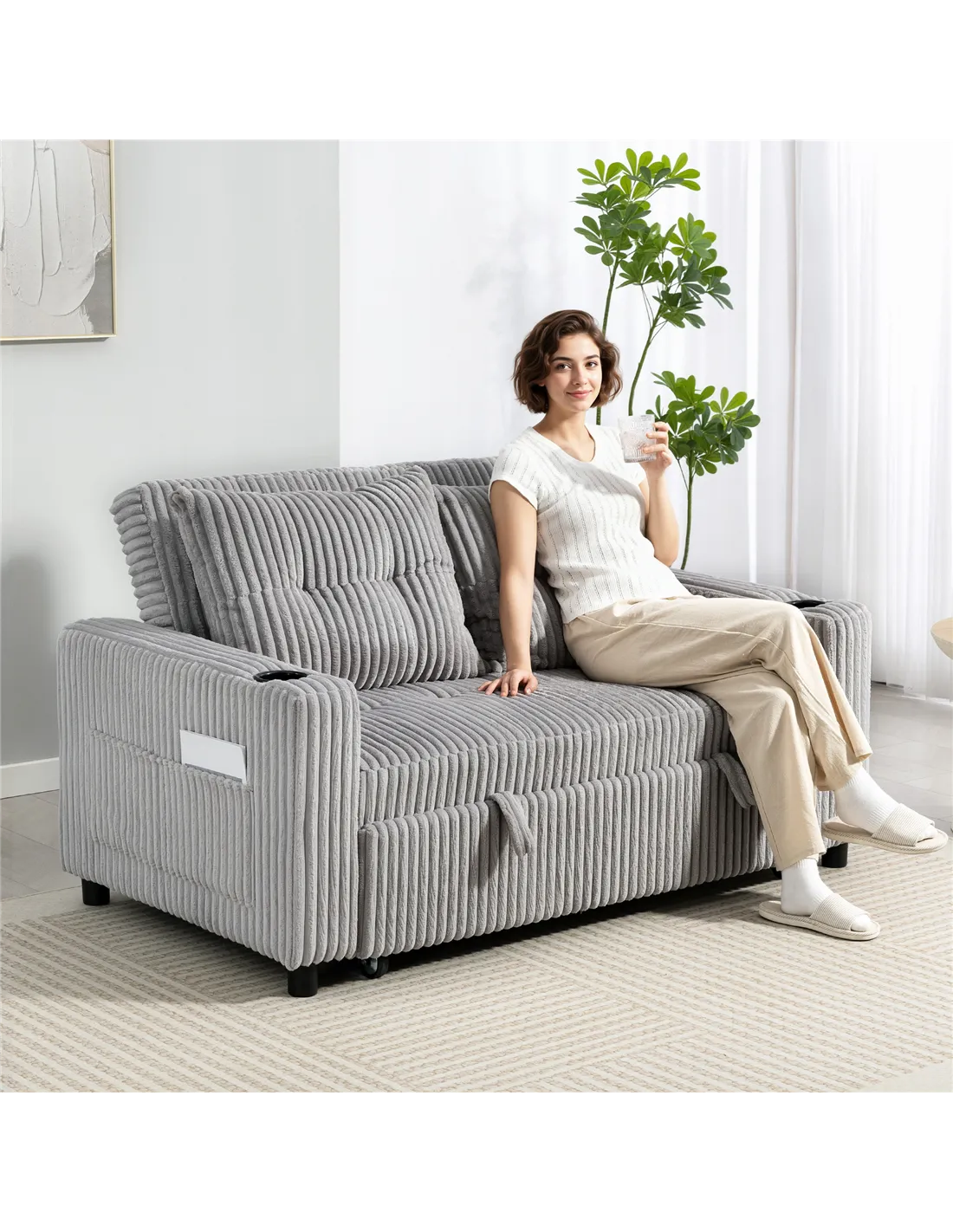 - Upholstered in soft, skin-friendly, wear-resistant corduroy fabric for a cosy, elegant feel