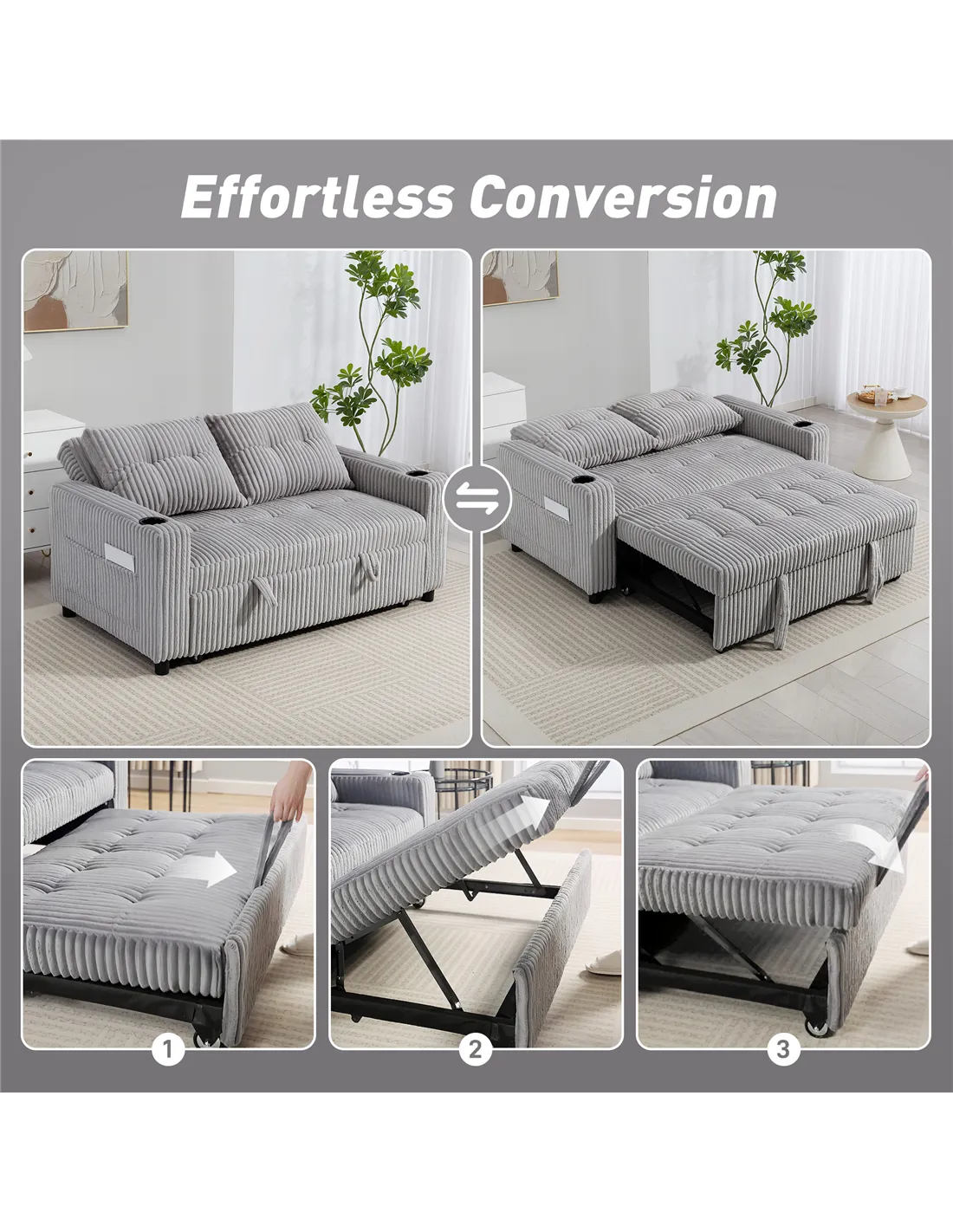 - Converts from sofa to guest bed in seconds, suitable for small spaces, easy pull-out design with wheels