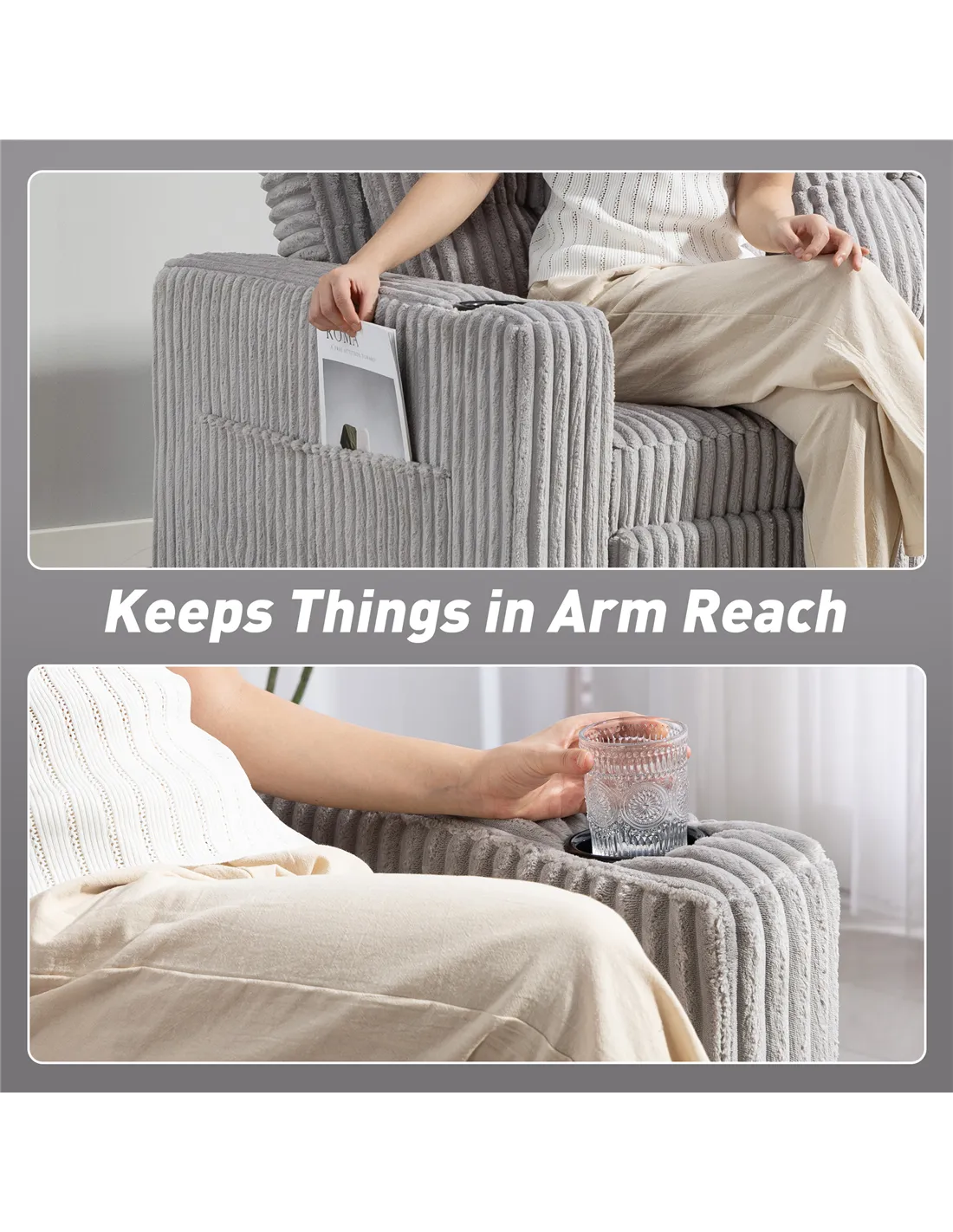 - Material: Corduroy (100% Polyester), Foam, Steel