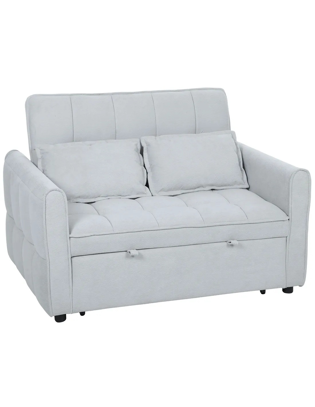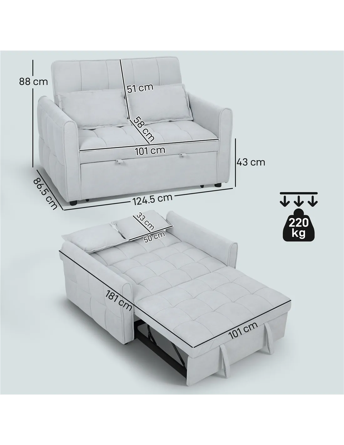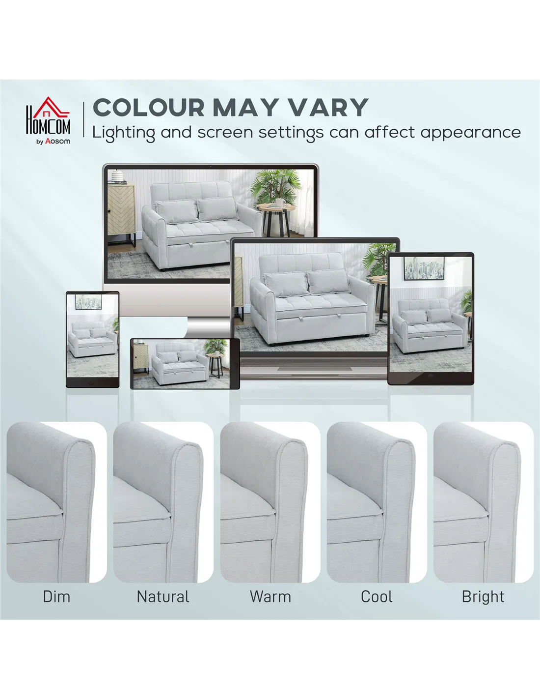 HOMCOM 2 Seater Sofa Bed, 3-in-1 Convertible Sleeper Sofa with Click-clack Adjustable Backrest and 2 Pillows, Light Grey
