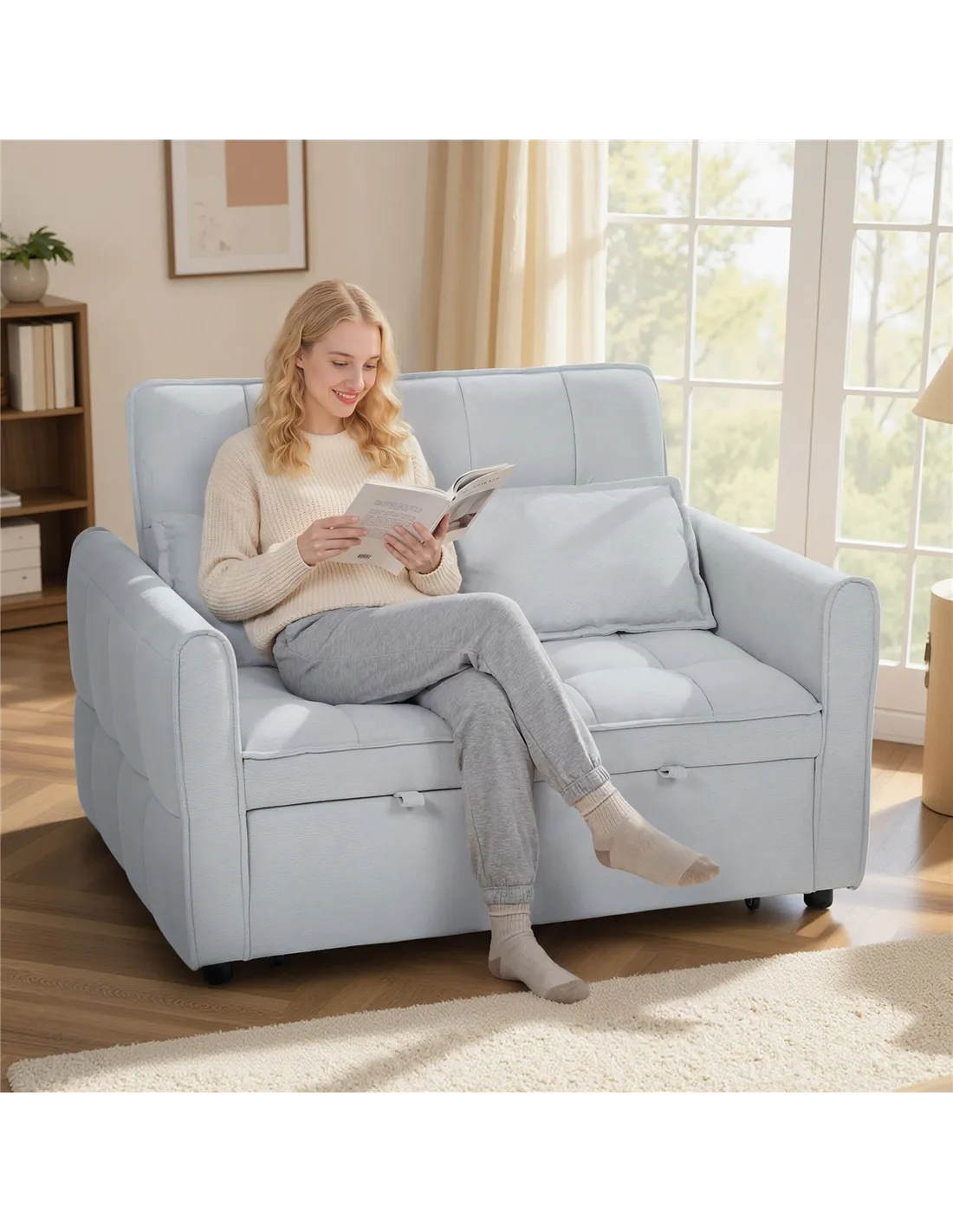 - A: This item functions as a two-seater sofa, a recliner, and a single bed. Its 3-in-1 design offers versatile use.