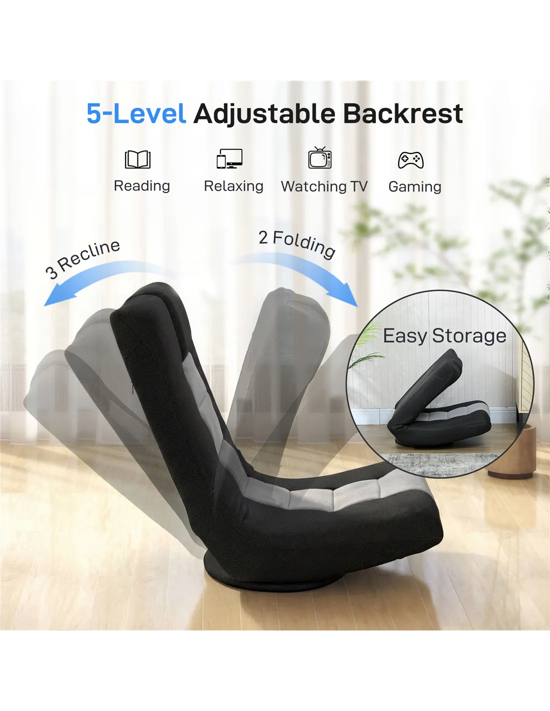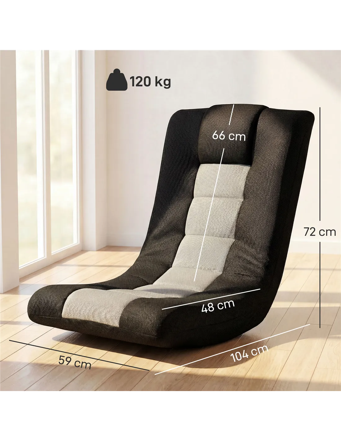 Discover versatile comfort with the HOMCOM Floor Chair, a black folding floor sofa designed for your UK home. This chair provides an adjustable backrest, offering three recline angles for reading, gaming, or unwinding. Enjoy ample space on the wide 59 cm seat, allowing comfortable cross-legged sitting. A 360° swivel base lets you turn effortlessly without moving the chair. The construction includes breathable mesh fabric and a 13 cm thick, high-density foam seat, ensuring cool, supportive comfort for extended periods. When not needed, the two forward-tilt positions allow compact folding for simple storage in smaller spaces. Its solid metal frame supports up to 120 kg. This chair delivers convenience, requiring no assembly.