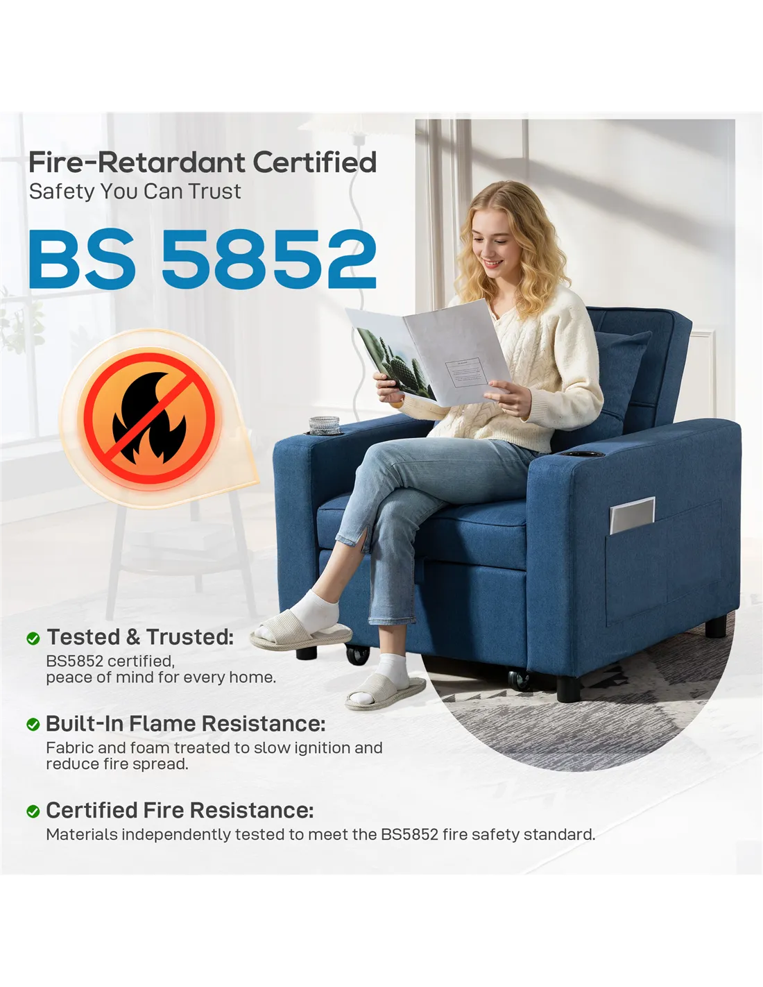 - Three-way design: Armchair, to recliner, to single bed. Use it how you want
