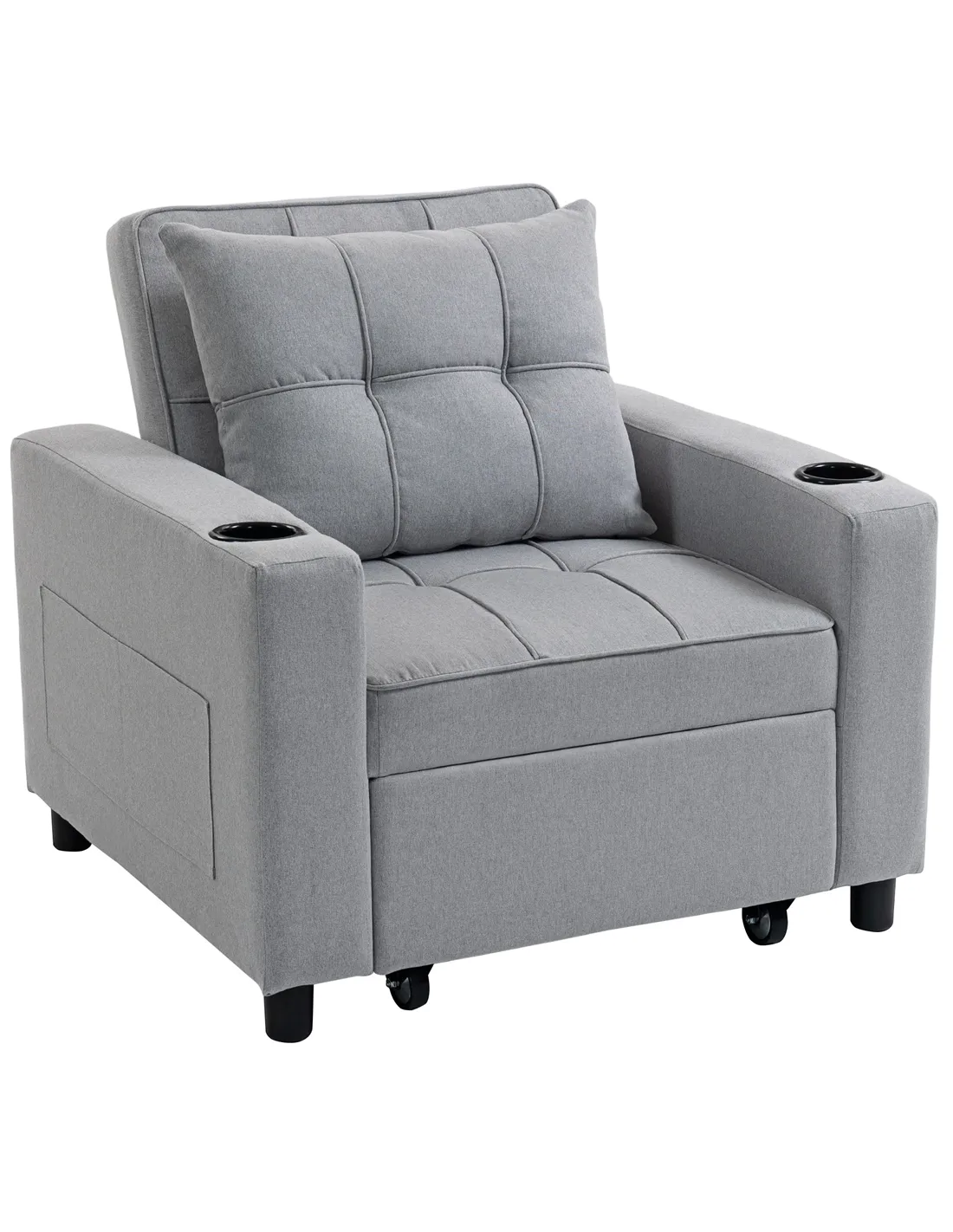 HOMCOM 3-in-1 Single Sofa Bed, Convertible Sleeper Chair Bed - Light Grey