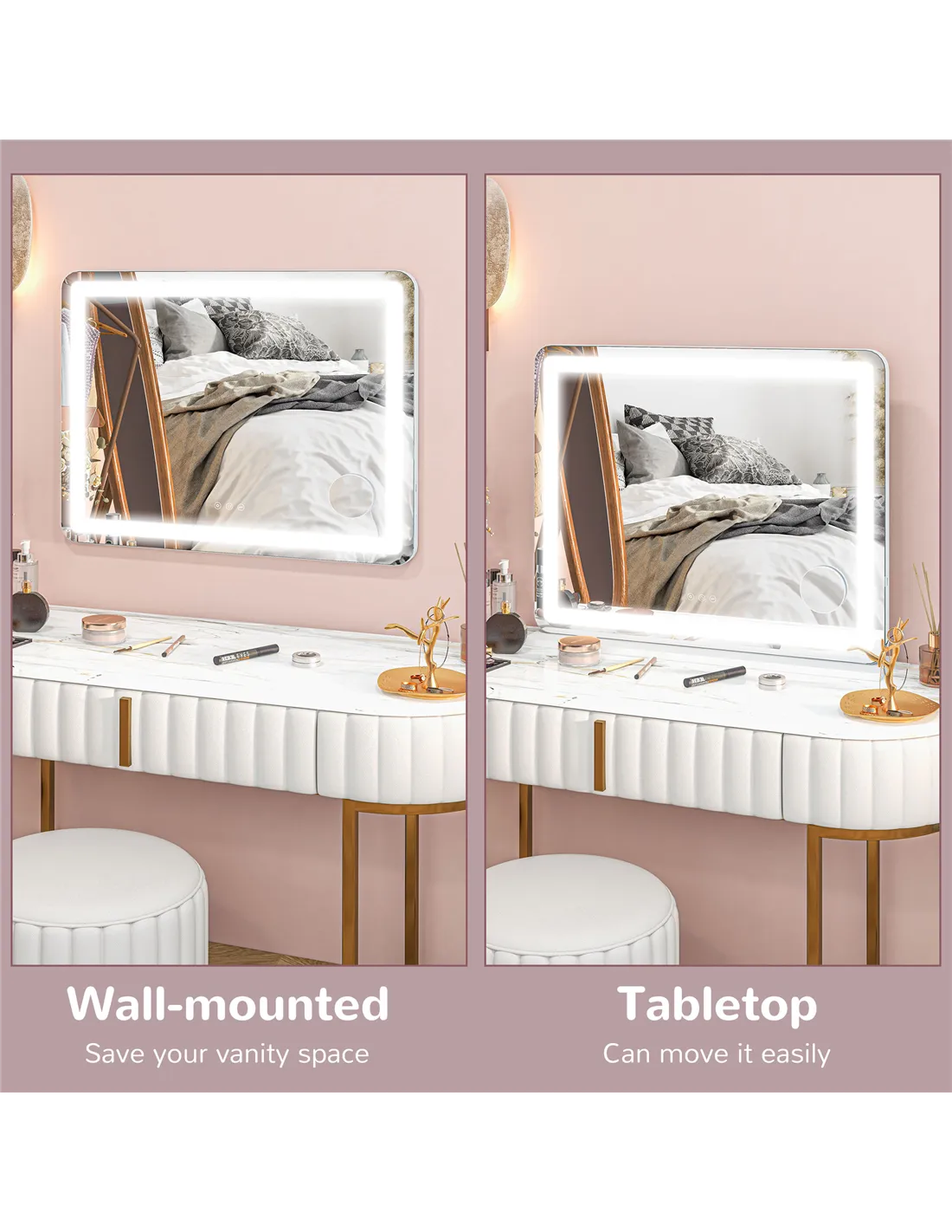HOMCOM Vanity Mirror with Lights, Large 80x62 cm Lighted Makeup Mirror with 3 Colour, 10X Magnifying, USB Charging Port, Touch Screen, Tabletop or Wall Mounted Design, White