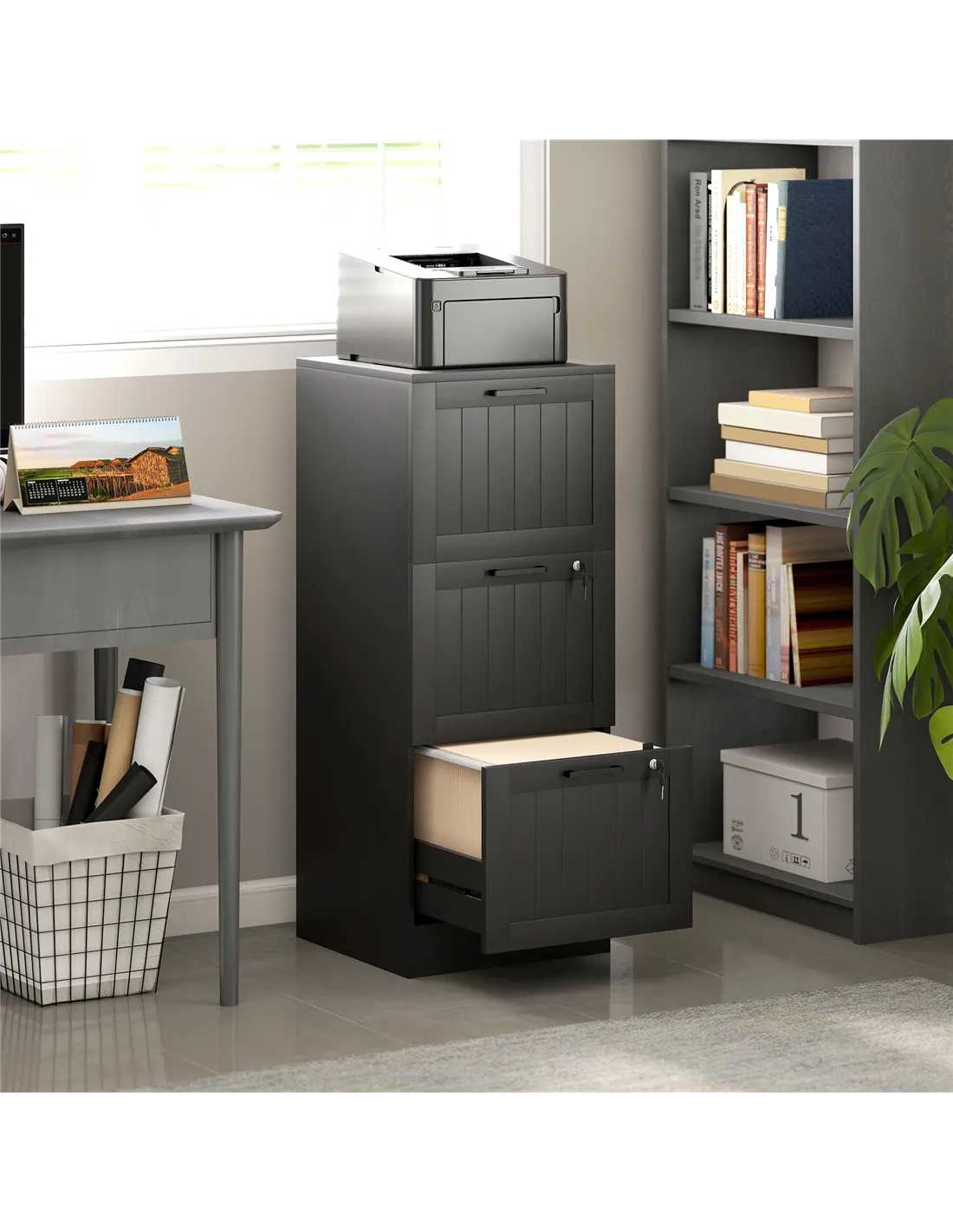 - A: The cabinet also functions as a practical printer stand. It helps to save valuable floor space in your office.