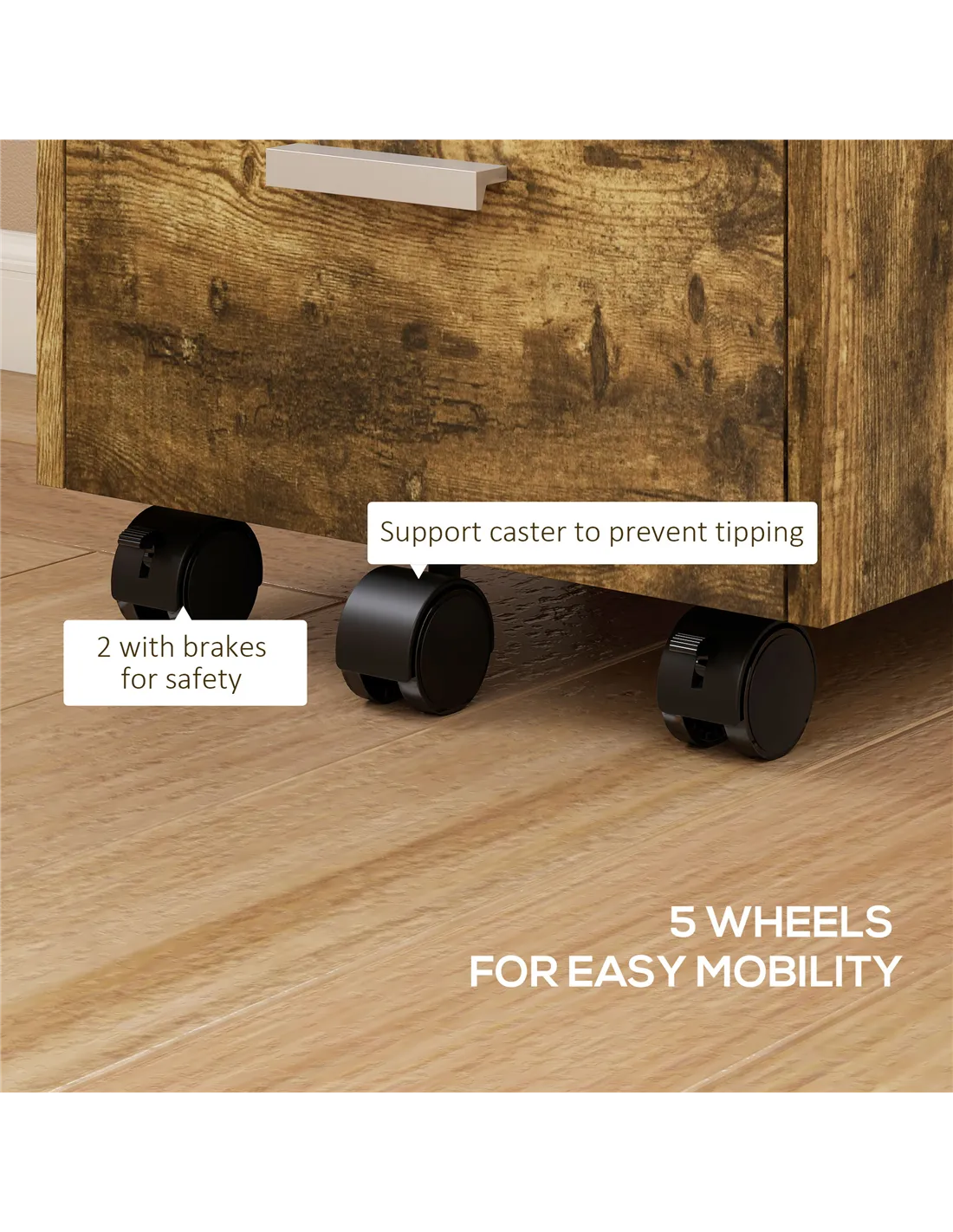 HOMCOM 3 Drawer Filing Cabinet with Lock, Rolling File Cabinet with Edged Top for Letter, A4 Size, Hanging File Folders