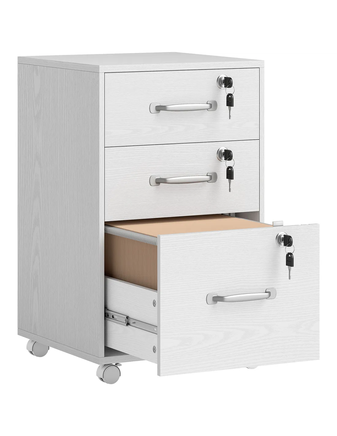 - A: Yes, each drawer features an individual lock. Two keys accompany each lock for enhanced security of your contents.