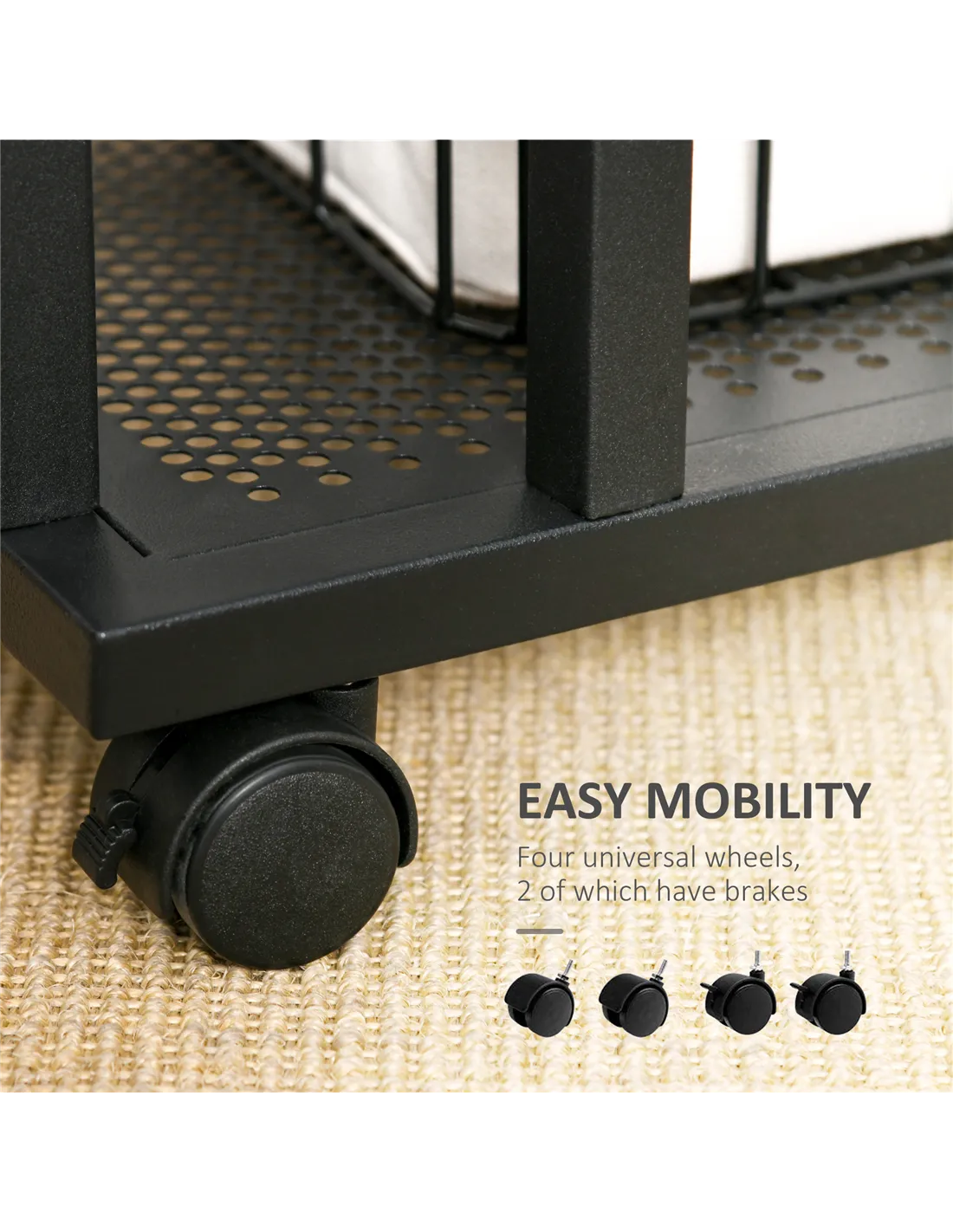 - Four smooth rolling castors to love around easily and prevent floor damage