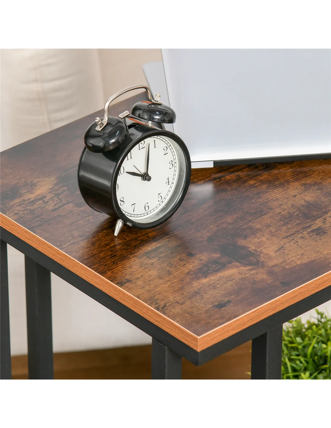 - A: The set is available in Rustic Brown and Black. The worktop is Rustic Brown, and the metal frame is Black.