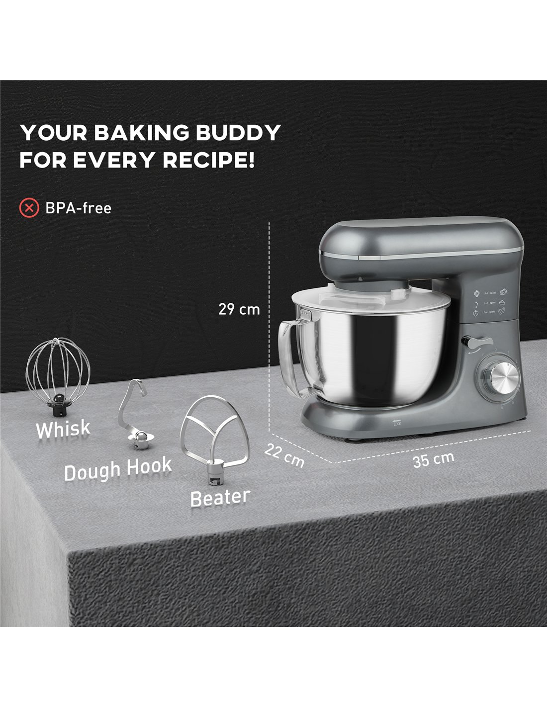 HOMCOM 1300W Kitchen Stand Mixer, with Accessories - Silver