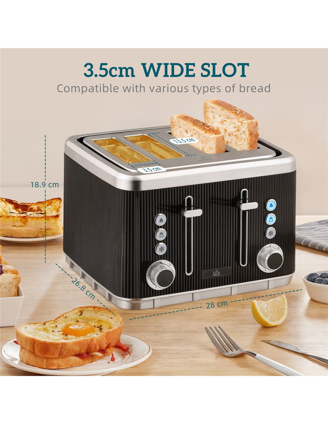 - Toaster Dimension: 28L x 26.8W x 18.9H cm