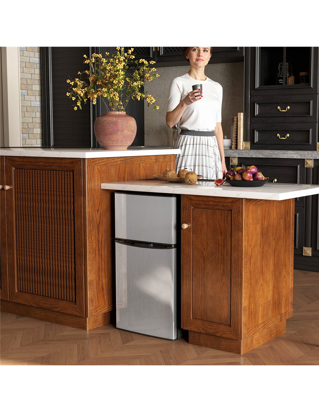 - A: This under-counter fridge freezer comes fully assembled, ready for immediate use. Simply position it, plug it in, and adjust the door swing if desired.