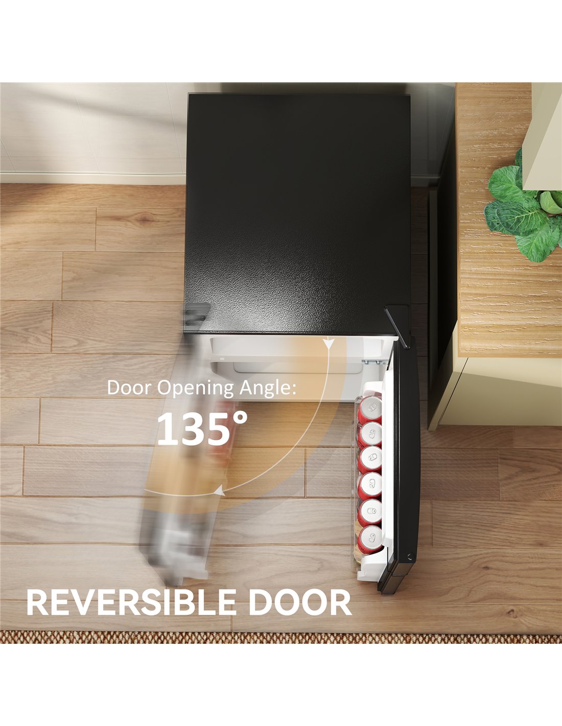 - Under counter size to fit into smaller spaces, with handy reversible doors