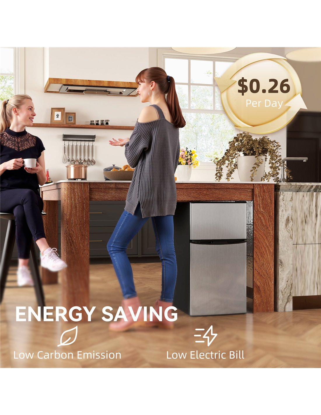- A: The HOMCOM 88L Under Counter Fridge Freezer has an E-rated energy efficiency. Its annual energy consumption is 167 kWh per annum.