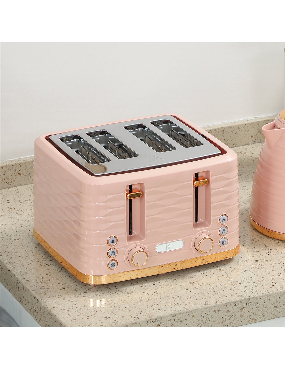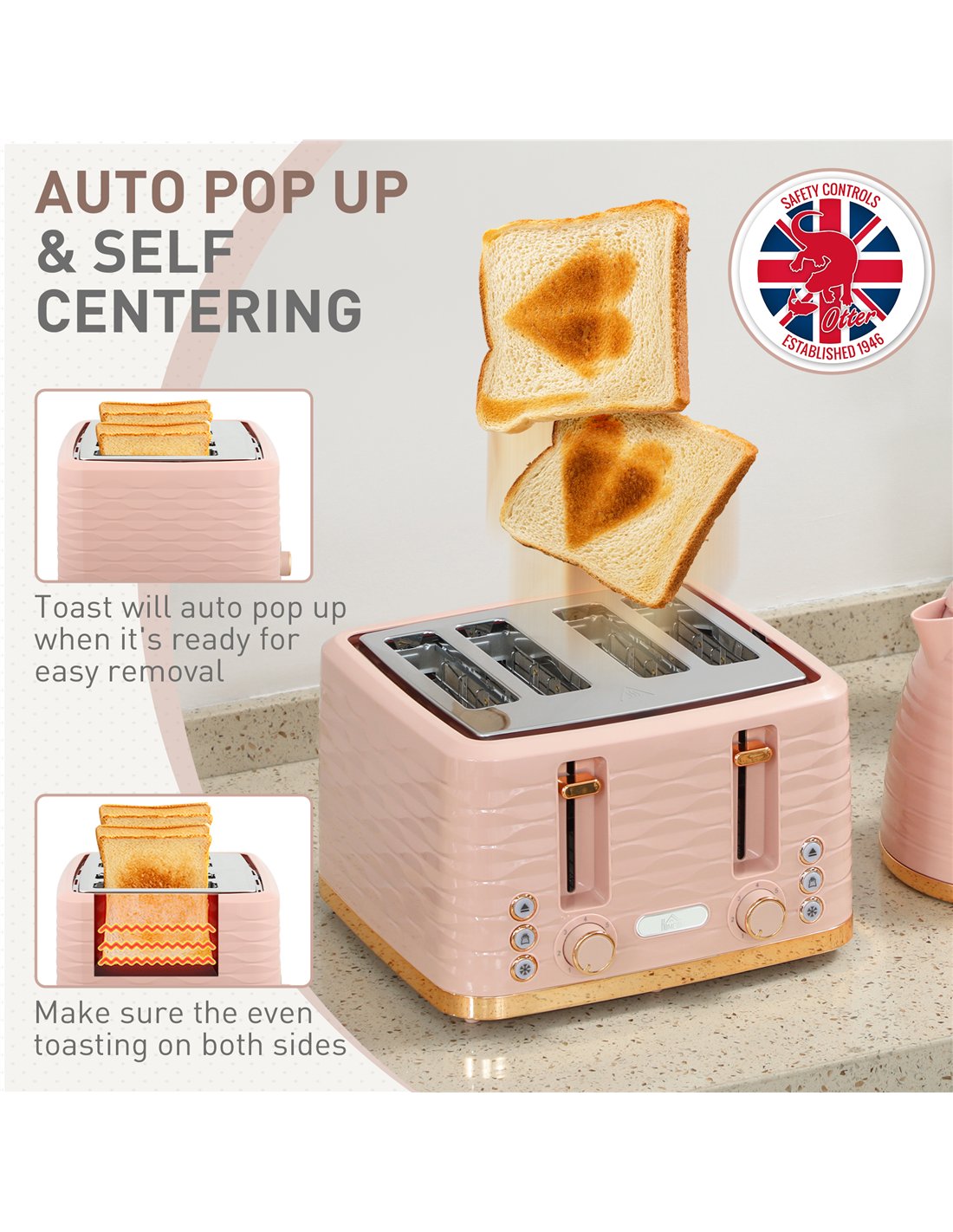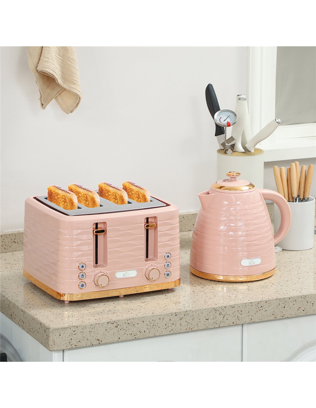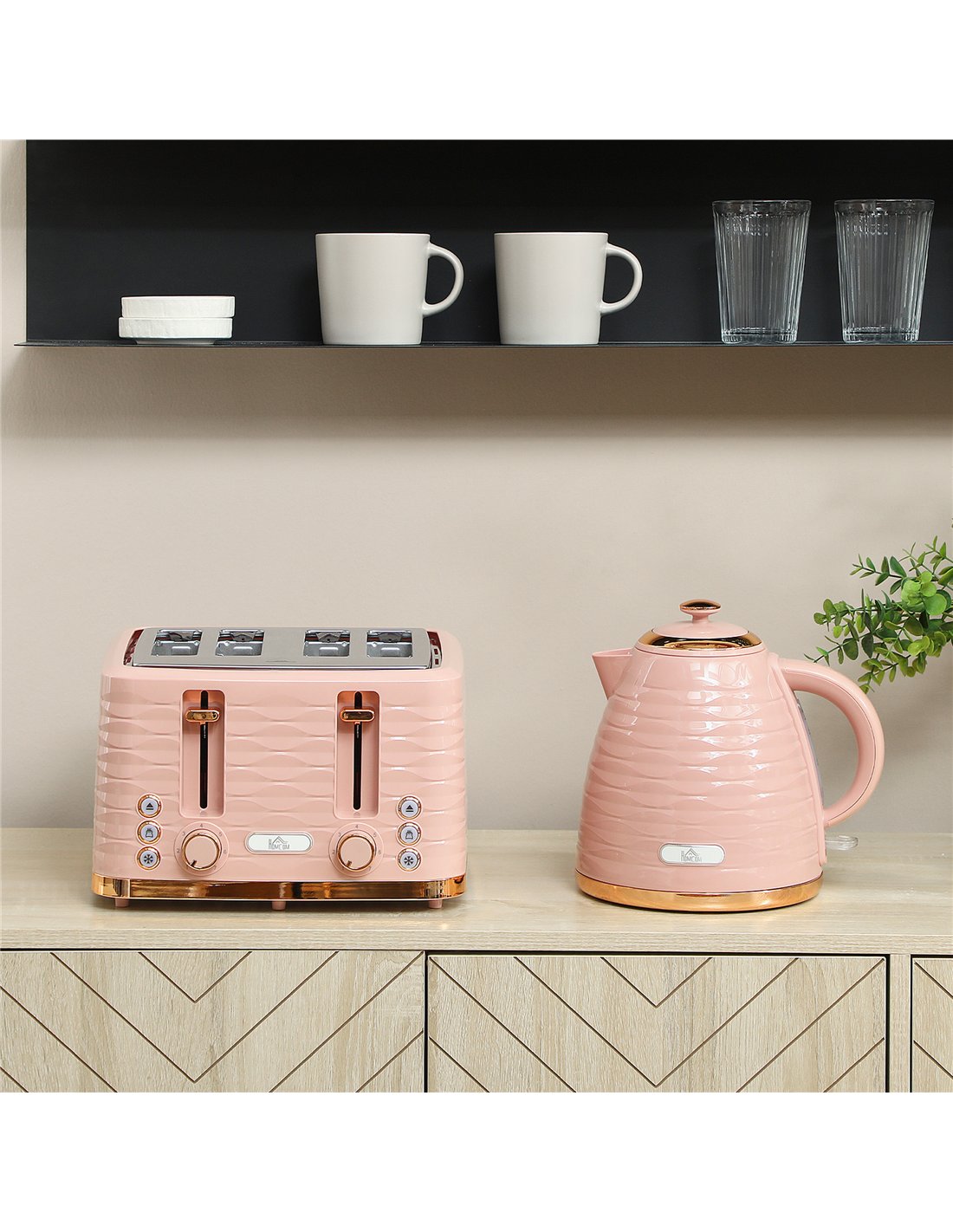 HOMCOM 3000W 1.7L Kettle & 4 Slice Toaster, Kettle and Toaster Set with 7 Browning Controls and Crumb Tray, Light Pink