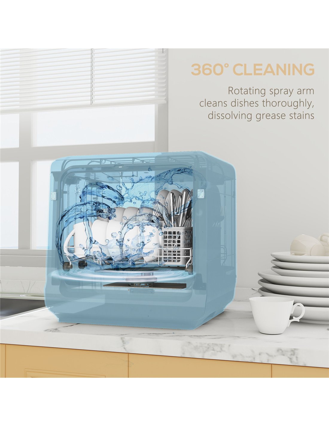 - Q: What is the washing capacity of the HOMCOM Table Top Dishwasher?