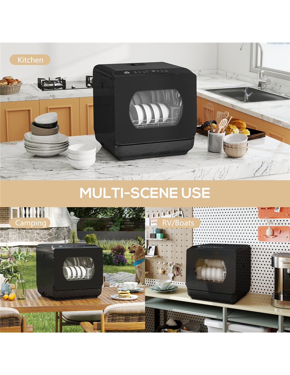 HOMCOM Table Top Dishwasher with Built-in 6L Water Tank, Mini Countertop Dishwasher with 6 Programs, 4 Place Settings, Black