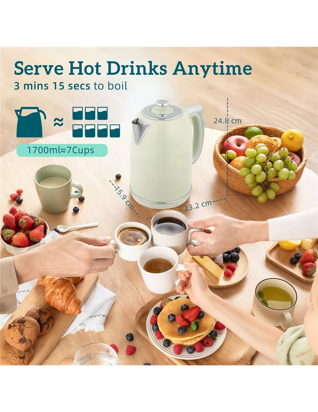 - 40-100°C temperature control on kettle. Rapid-boil and 1.7L capacity is enough for seven cups quickly
