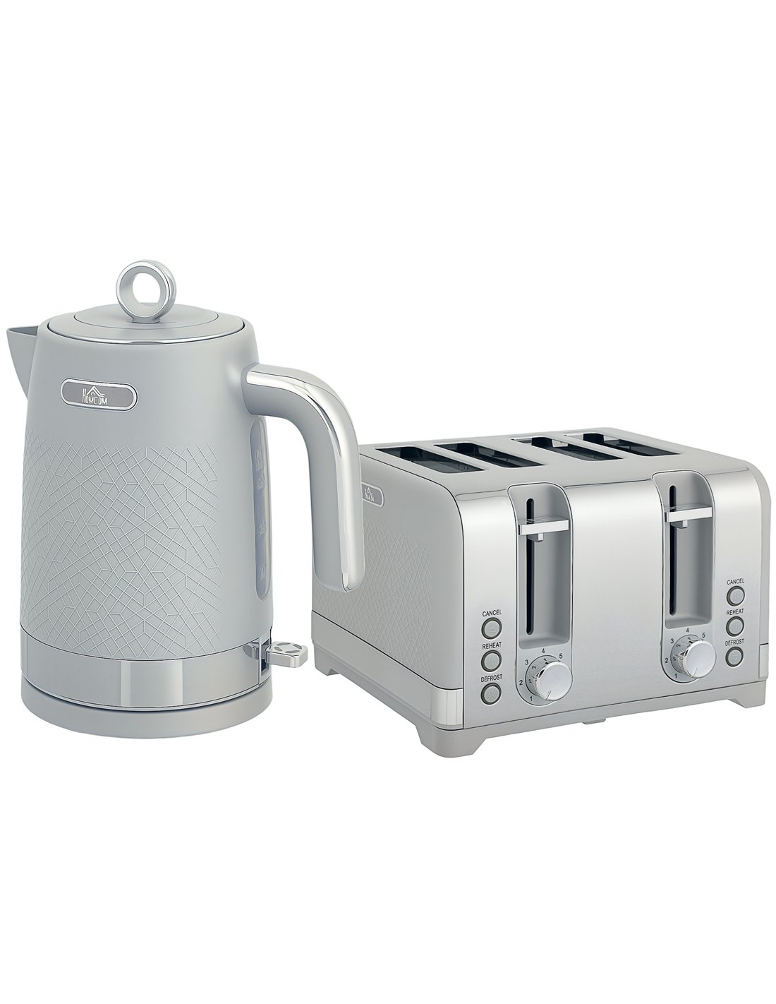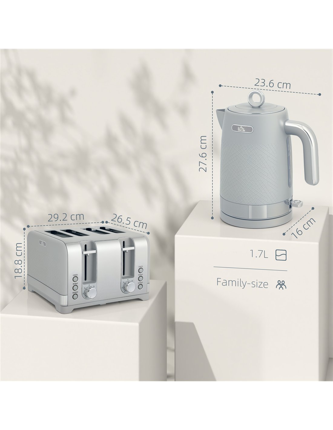 HOMCOM Sleek Textured Kettle and Four-Slice Toaster Set - Grey