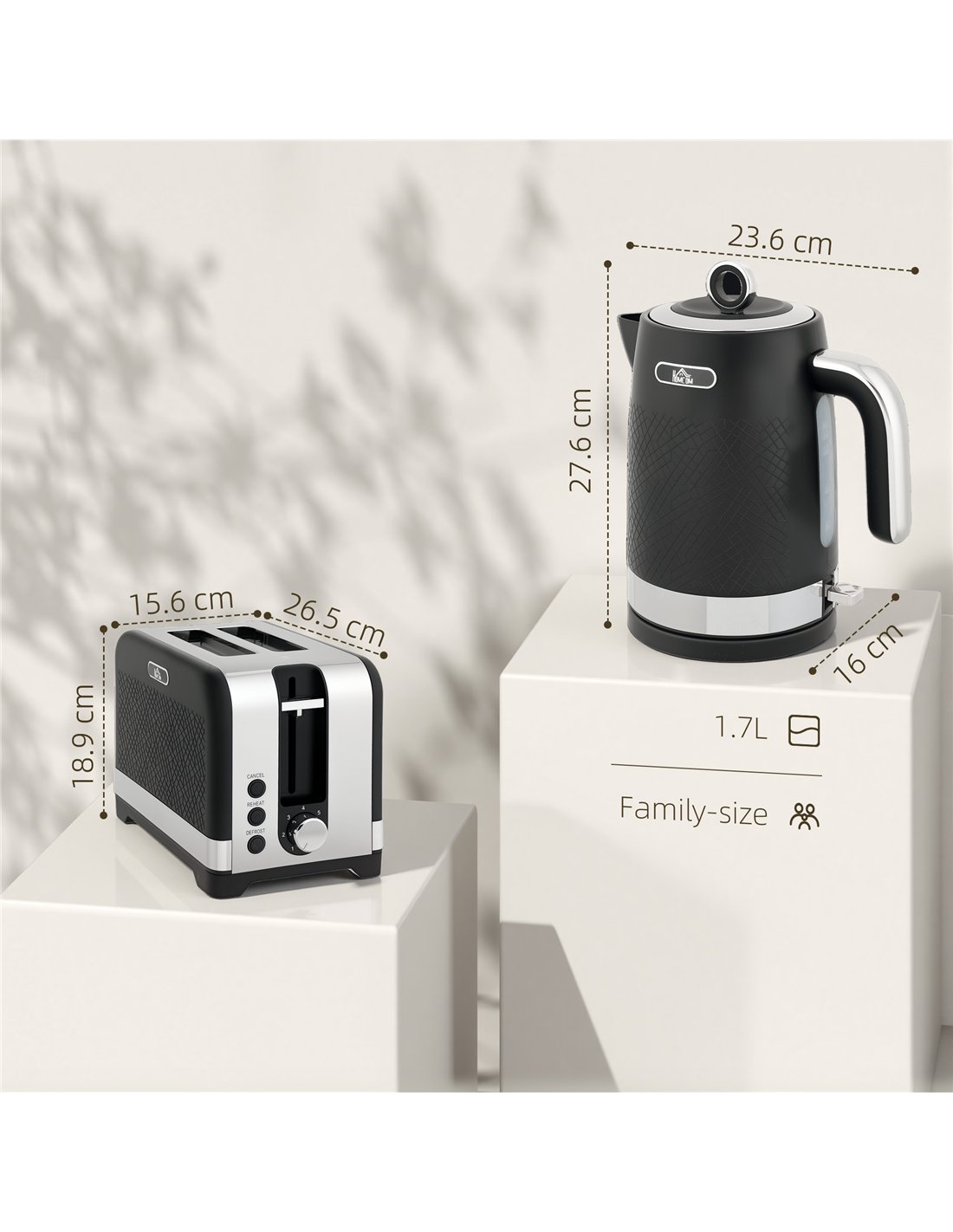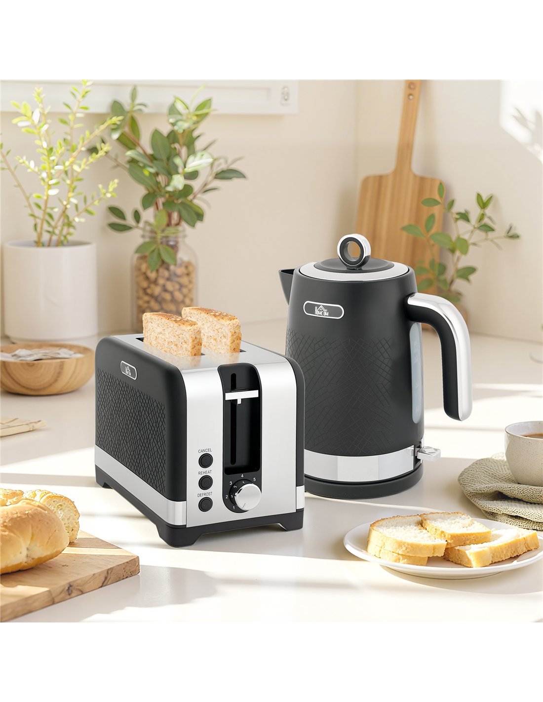 HOMCOM Sleek Textured Kettle and Toaster Set - Black