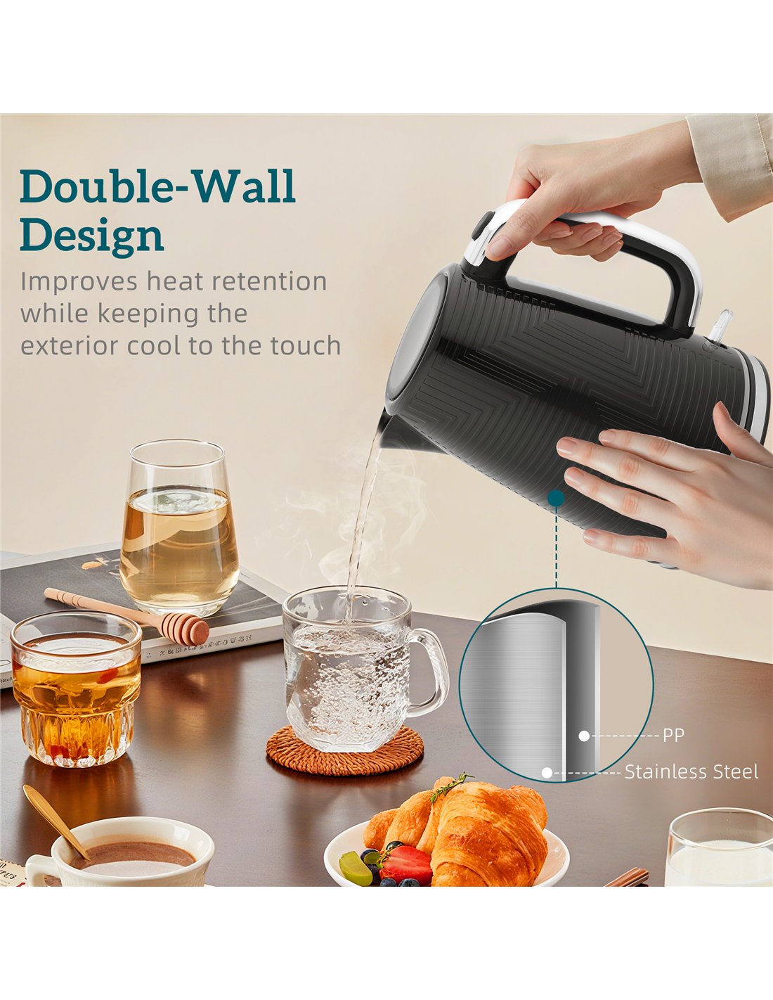 - Auto shut-off, boil-dry and overheat protection for safety