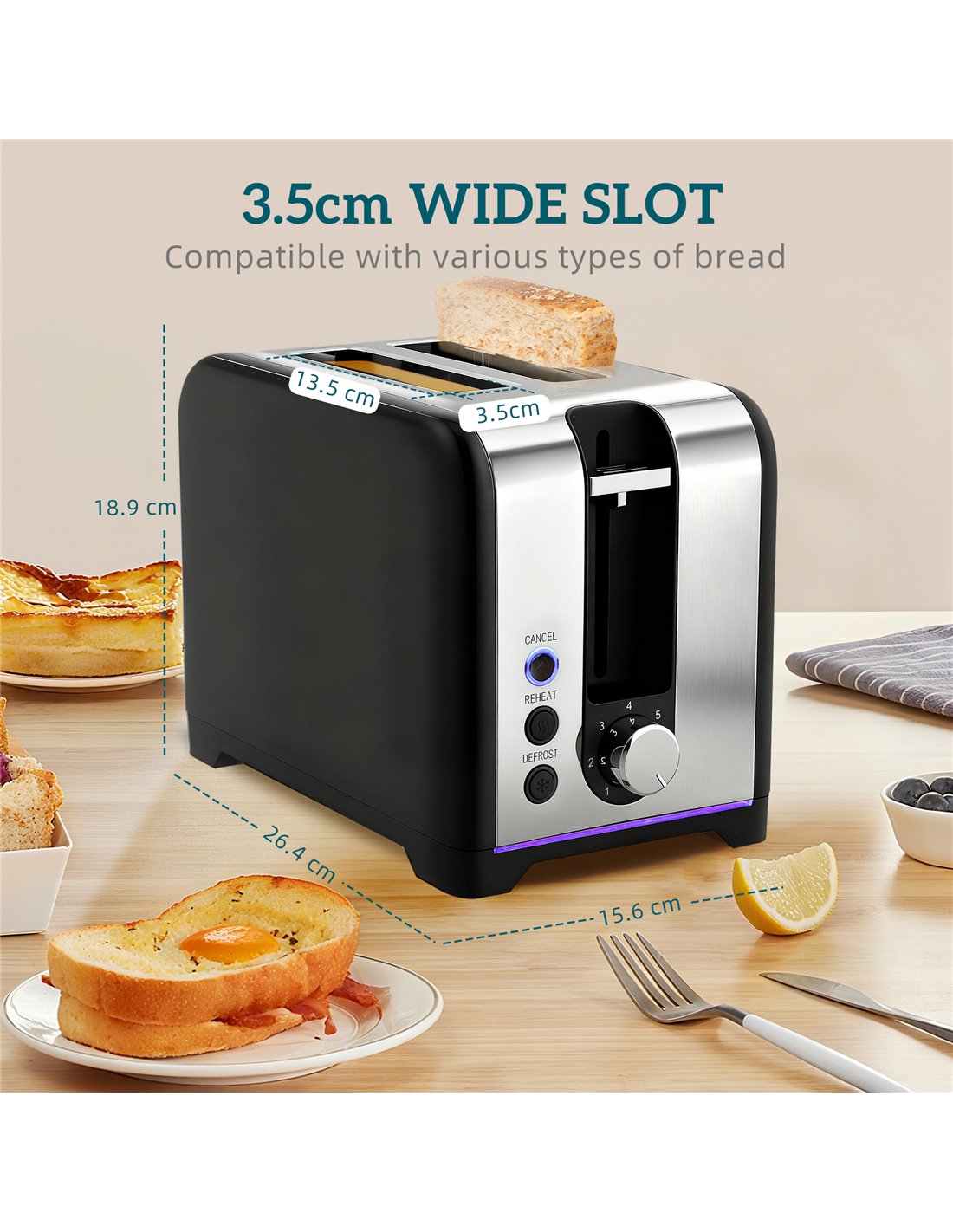 - Toaster Slot Dimension: 13.5L x 3.5W x 13.5H cm