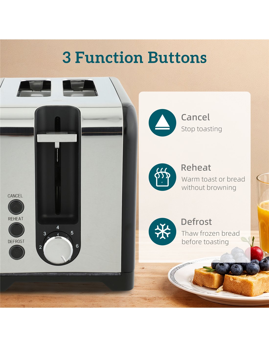 - Seven browning levels on toaster to customise toast to your preference