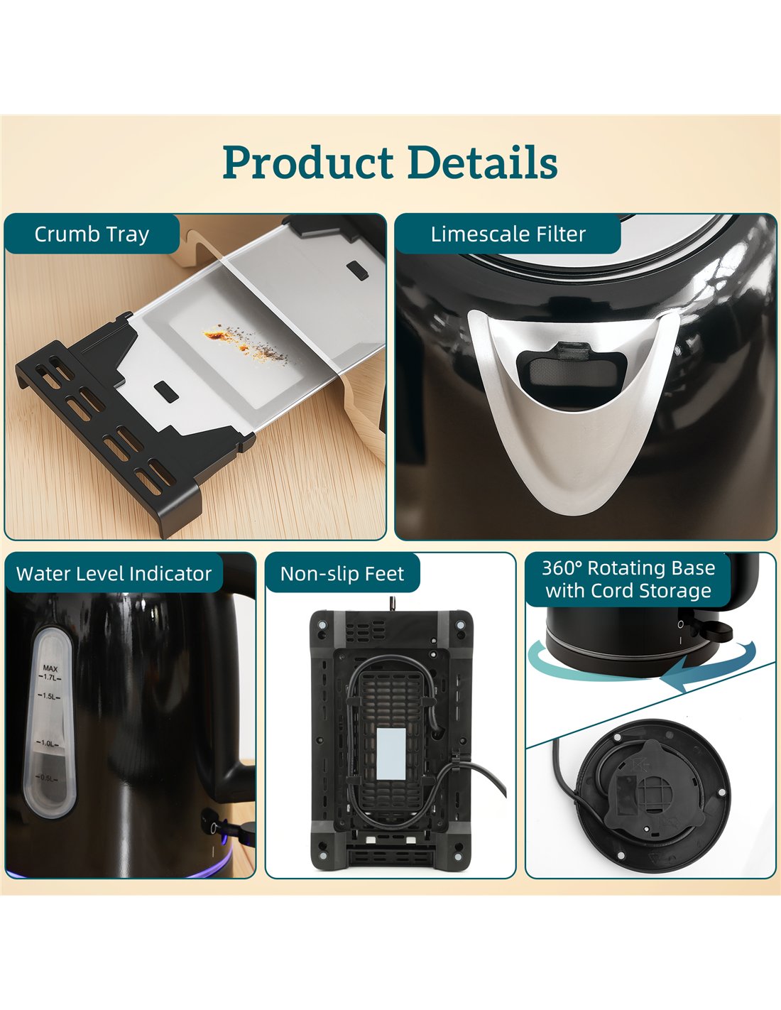 - Kettle Capacity: 1.7L