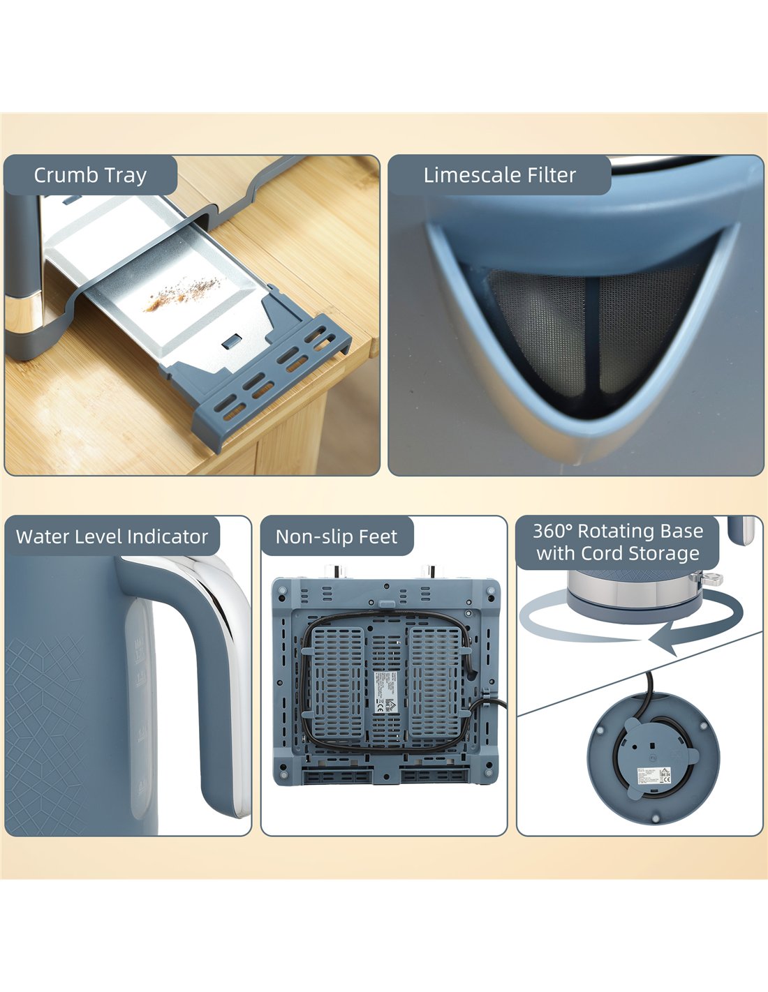 - Removable filter and crumb tray for quick, easy cleaning