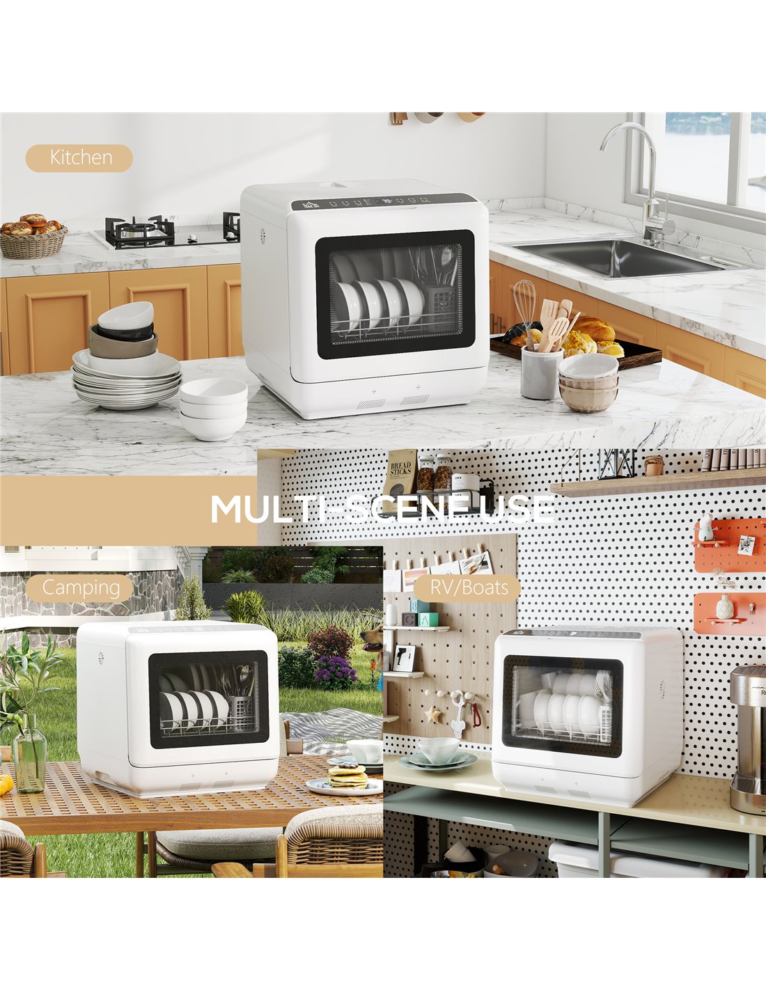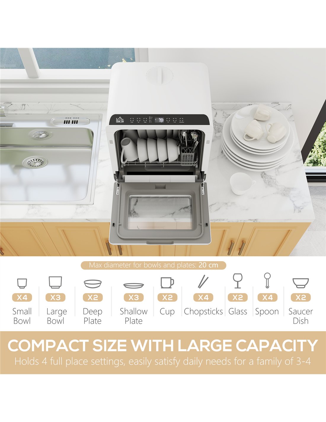 HOMCOM 6L Five-Mode Tabletop Dishwasher - White