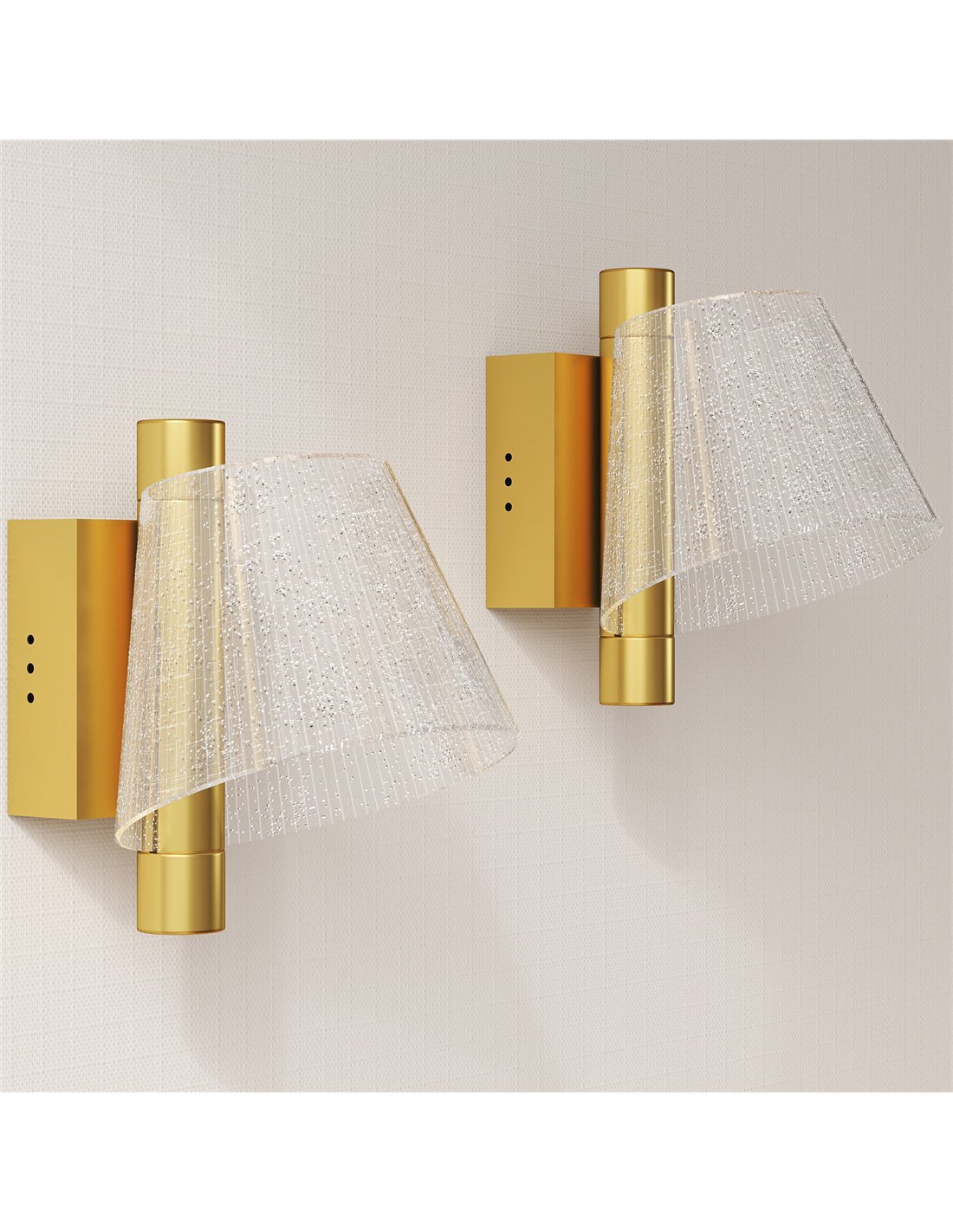 - A: This HOMCOM Led Wall Lamp 2 Pack offers a modern gold tone design with a starry effect from etched vertical lines. Each 5W lamp provides adjustable colour temperatures (3000K, 4000K, 6500K) and high colour rendering (Ra > 80). They are constructed from durable metal and acrylic.