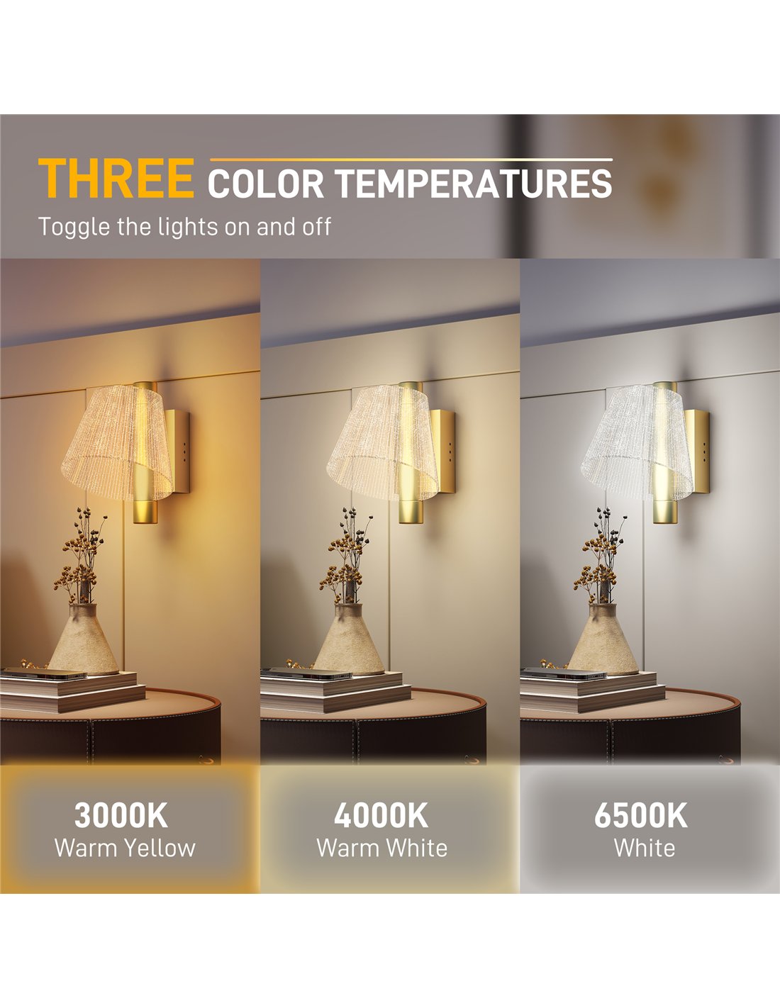 - A: The HOMCOM Led Wall Lamp provides three adjustable colour temperatures. Choose 3000K for a warm yellow light, 4000K for a warm white light, or 6500K for a brighter white light. This allows you to set the perfect mood.
