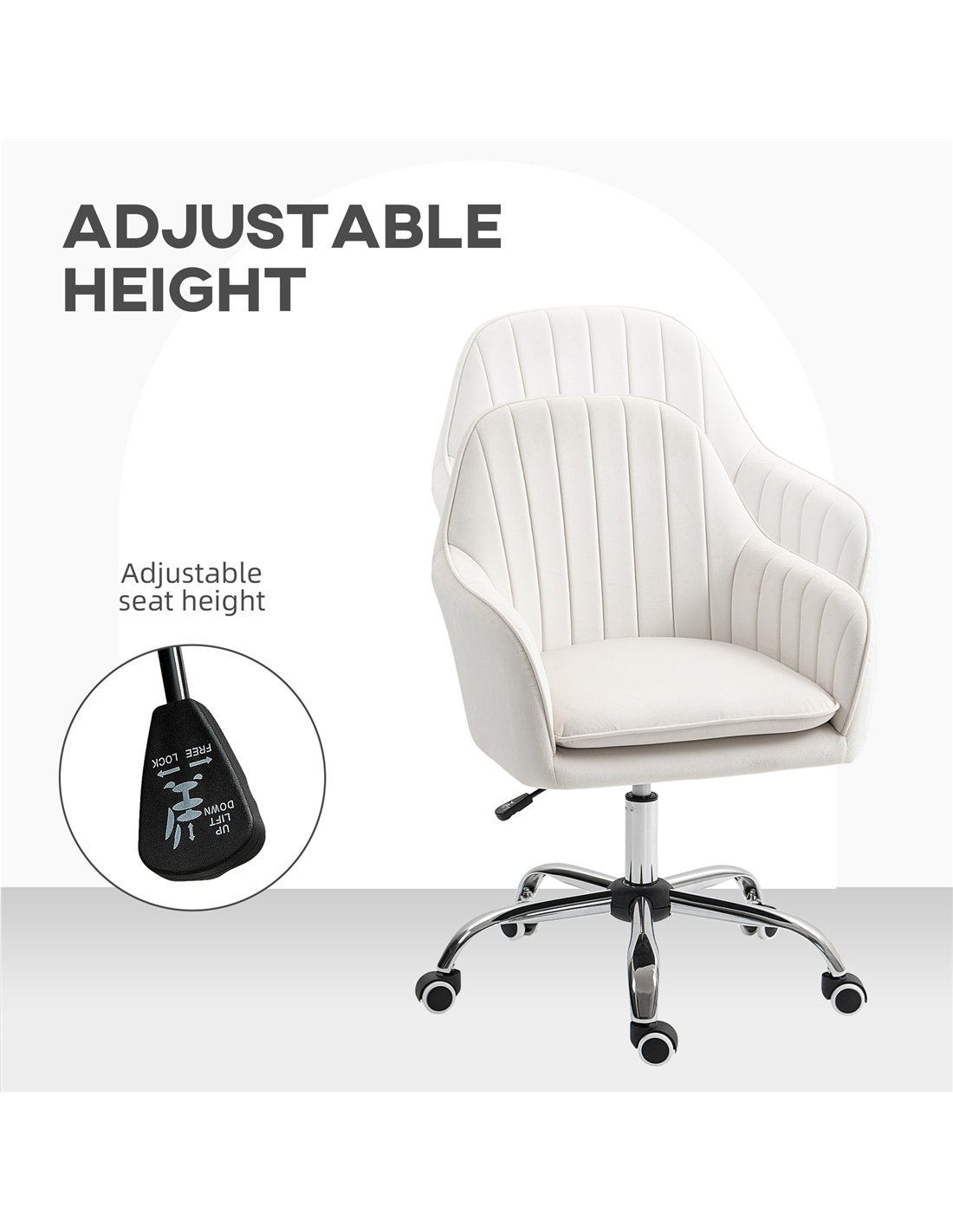 HOMCOM Velvet-Feel Office Chair with Adjustable Height and Wheels - Cream White