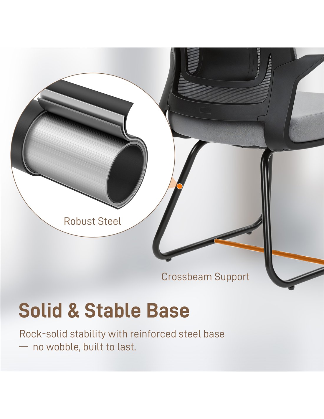 The HOMCOM Desk Chair offers superior comfort and robust support for your workspace. This office chair features a contoured backrest with essential lumbar support. It protects your back and encourages correct spinal alignment during extended periods of sitting. A foam-filled cushion actively distributes pressure across your hips and thighs. The breathable mesh back promotes airflow, keeping you cool and comfortable. Designed without wheels, this chair provides unwavering stability, making it ideal for waiting rooms, conference rooms, or fixed office setups. Its reinforced steel base ensures exceptional durability. Supportive armrests and a roomy seat accommodate various users. The dark grey finish integrates seamlessly into any professional or home office environment. This chair delivers consistent comfort and reliable performance for daily use. Assembly is straightforward, ensuring quick setup for immediate comfort.