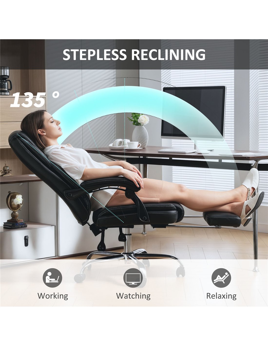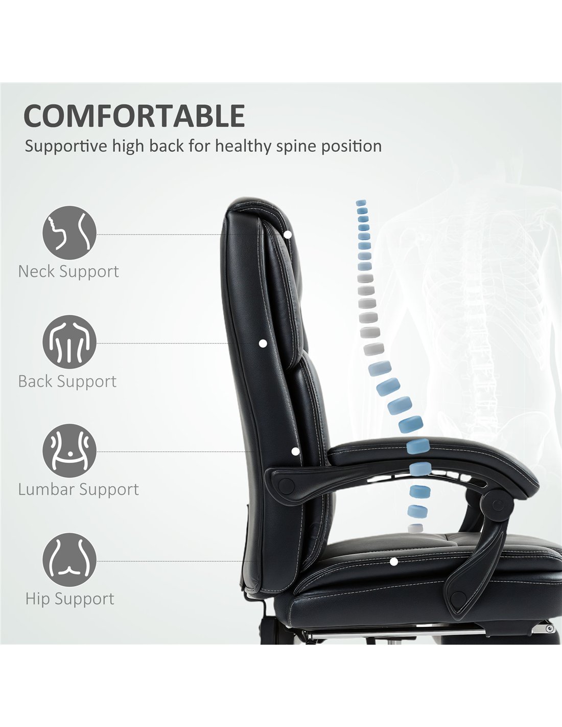 - A: The HOMCOM Faux Leather Reclining Office Chair supports a maximum load of 120 kg.
