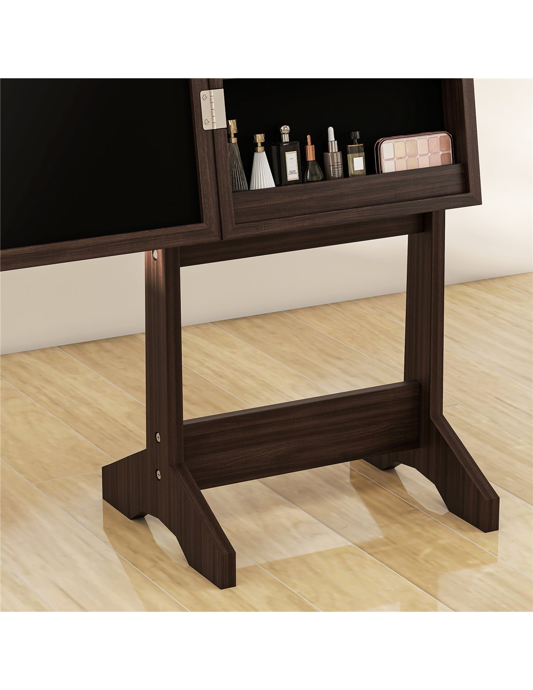 HOMCOM Freestanding Mirrored Jewellery Storage Cabinet - Dark Brown