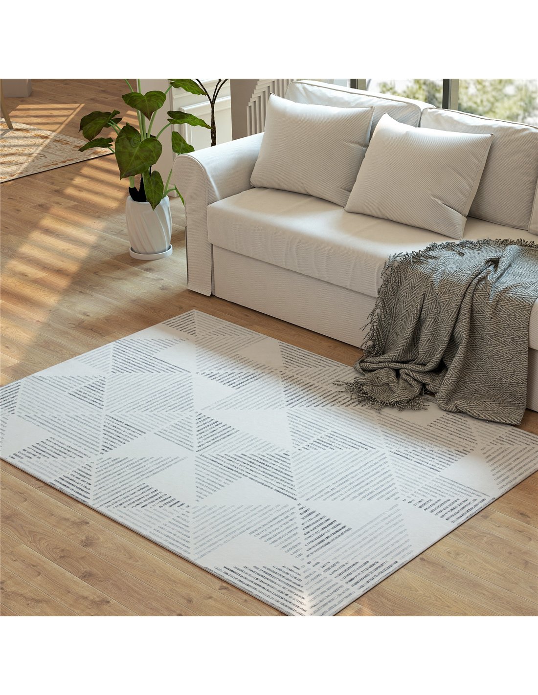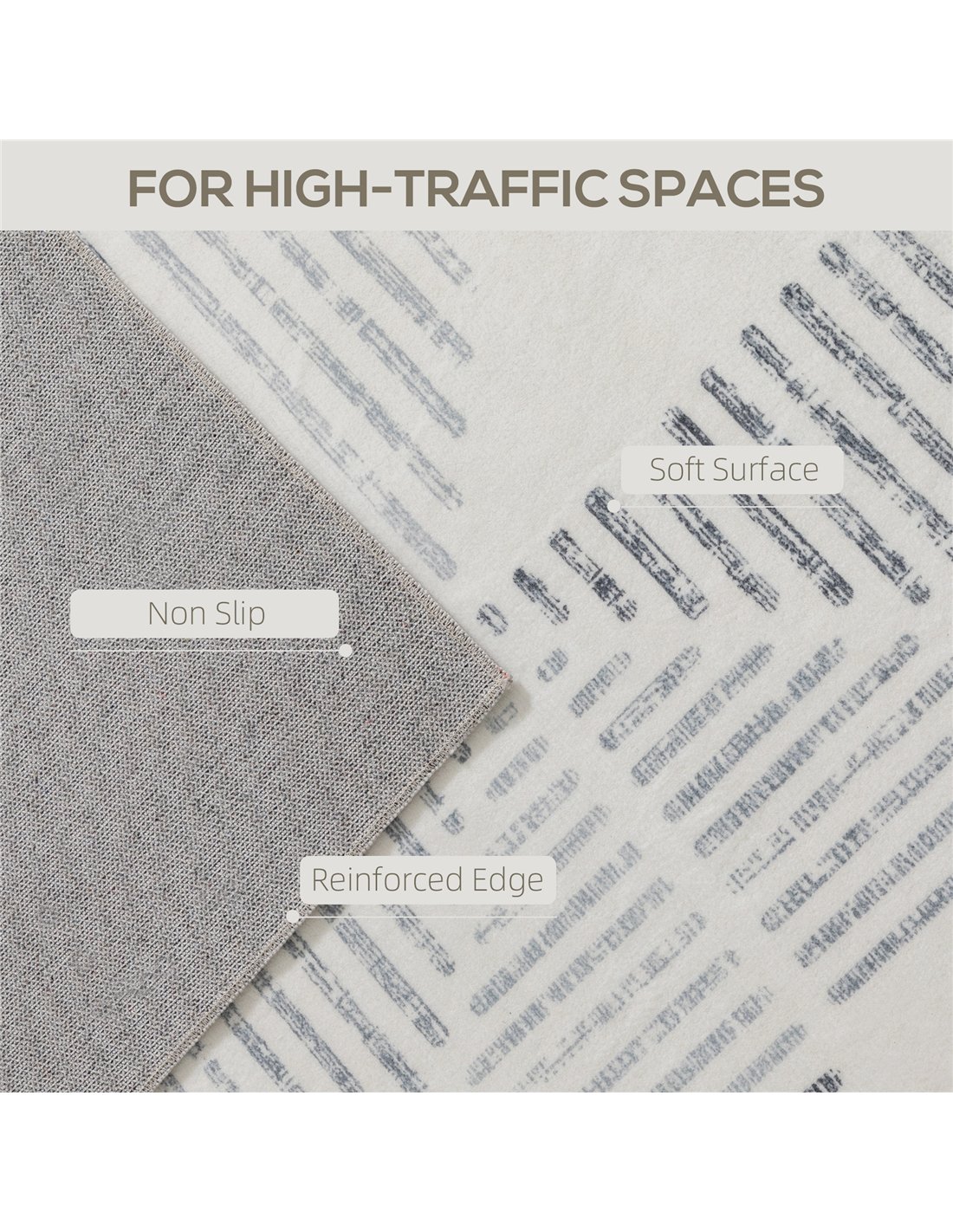 Enhance your home with the HOMCOM Modern Area Rug, a grey 170 x 120 cm floor carpet designed for UK living spaces. This contemporary rug features a subtle geometric pattern, bringing modern minimalist style to your living room, bedroom, dining room, or home office. Experience exceptional comfort with its 100% polyester plush surface and a 3 mm pile height, providing ultra-softness underfoot. The gently contrasting tones complement a range of interior décors. This practical rug offers effortless maintenance; its machine-washable design ensures easy cleaning and lasting freshness. A robust TPR non-slip backing provides stability, preventing movement and ensuring safety in high-traffic areas. Choose this versatile, foldable rug for a harmonious blend of elegant design, superior comfort, and convenient, long-term use.