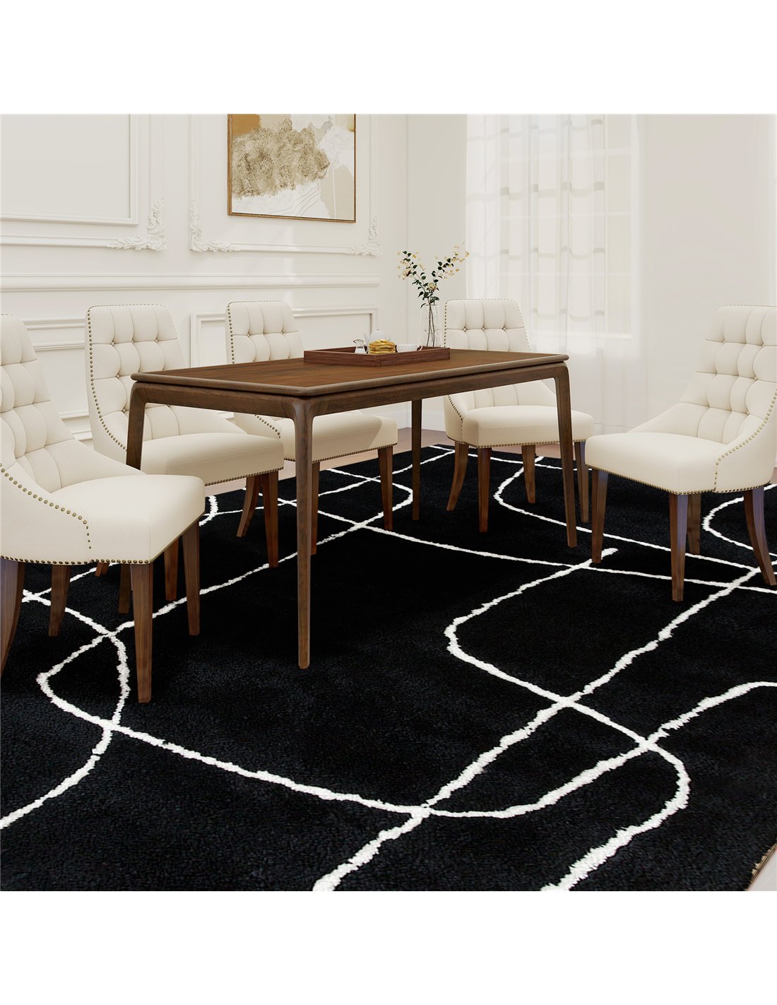 Elevate your home's comfort and style effortlessly with the HOMCOM Modern Fluffy Area Rug, an ideal choice for UK residences. This generously sized 170 x 120 cm black floor carpet features a subtle geometric pattern and abstract white lines, introducing a contemporary minimalist aesthetic to any room. Crafted from 100% dense polyester, its luxurious 20 mm plush pile delivers a distinctly soft and comfortable feel underfoot. Maintain pristine condition with ease; this versatile rug is fully machine washable, simplifying care and upkeep. Its adaptable design seamlessly enhances living rooms, bedrooms, dining rooms, home offices, and hallways, providing an inviting focal point. Experience practical elegance and a durable foundation, transforming your space into a welcoming and stylish haven.
