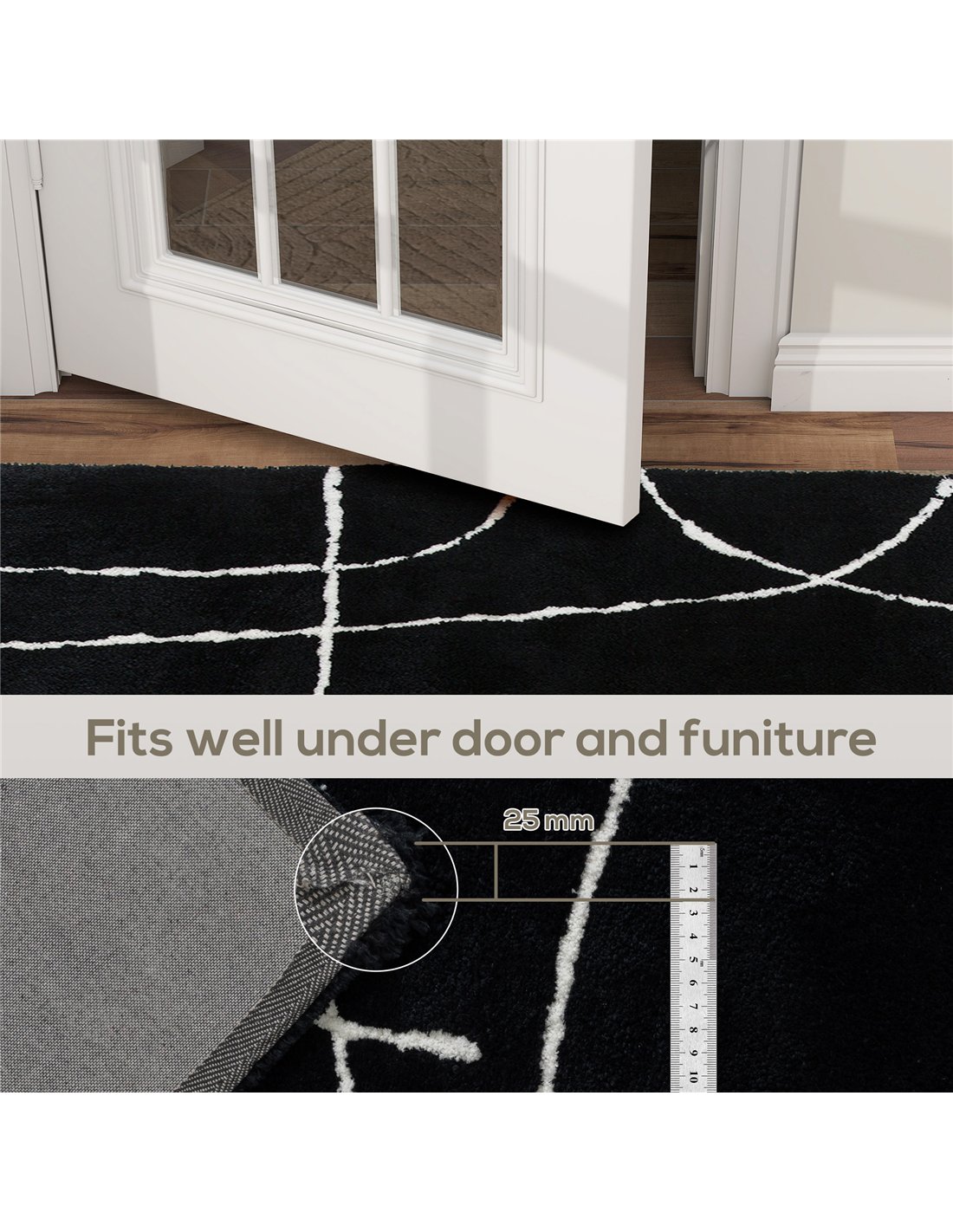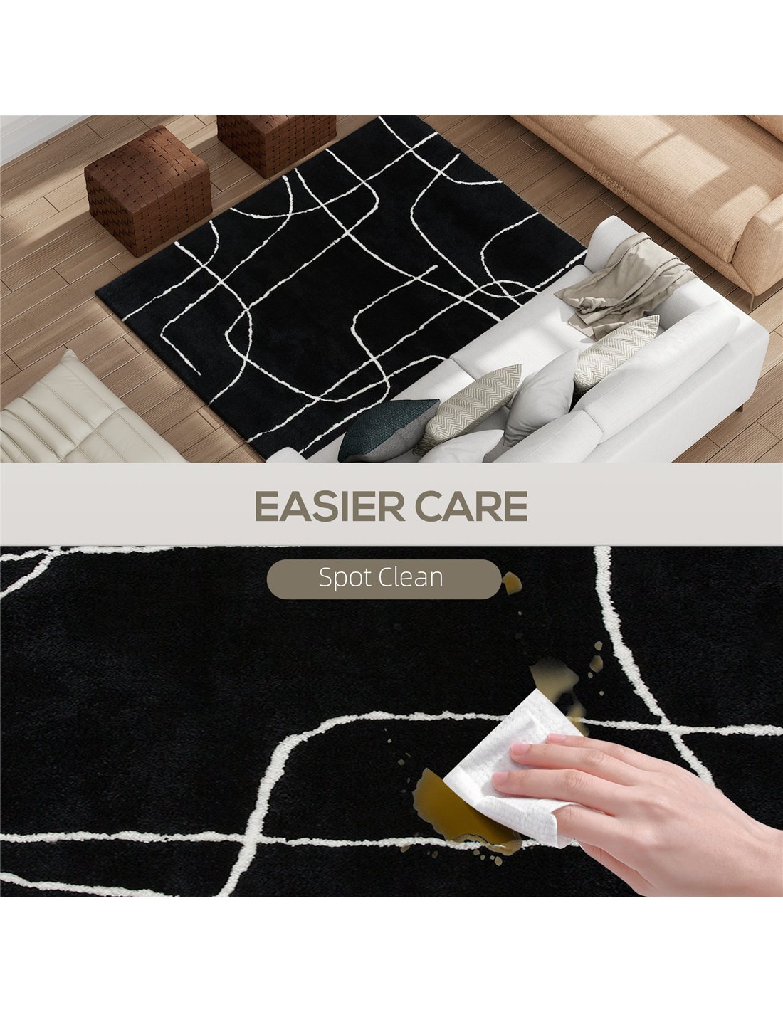 HOMCOM Modern Fluffy Area Rug, Geometric Pattern Washable Rug, Soft High Pile Floor Carpet for Living Room, Bedroom, Dining Room, Home Office, 170 x 120 cm, Black