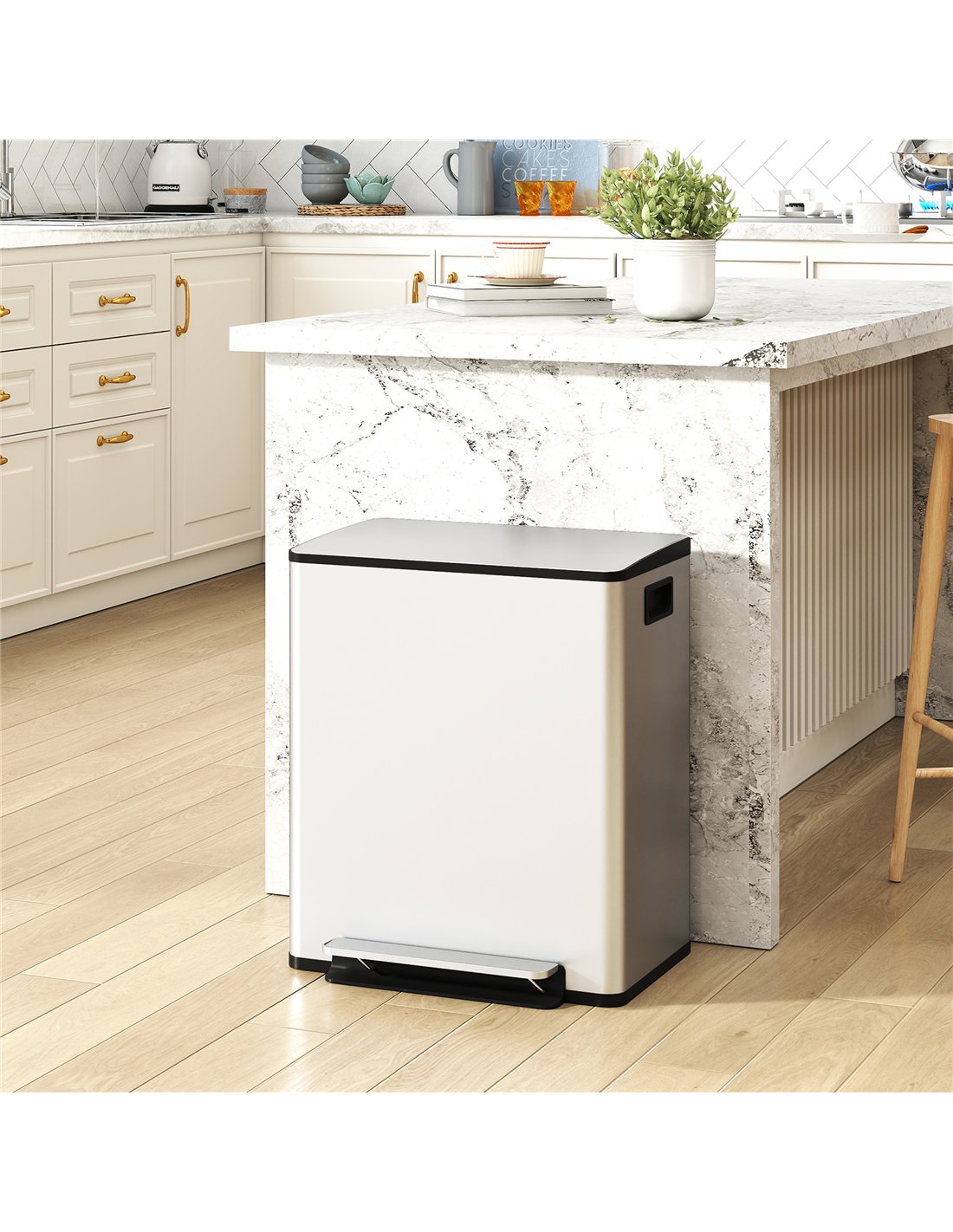 - Q: What is the total capacity of the HOMCOM Dual Compartment Bin?