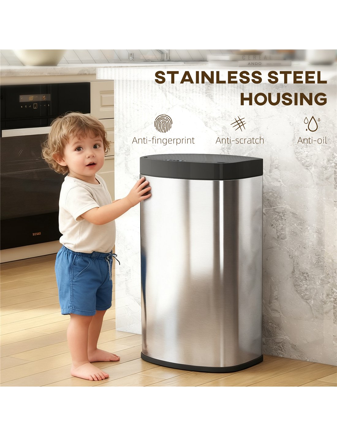 - Wave your hand within 15 cm for touchless opening, keeping your home cleaner and more hygienic