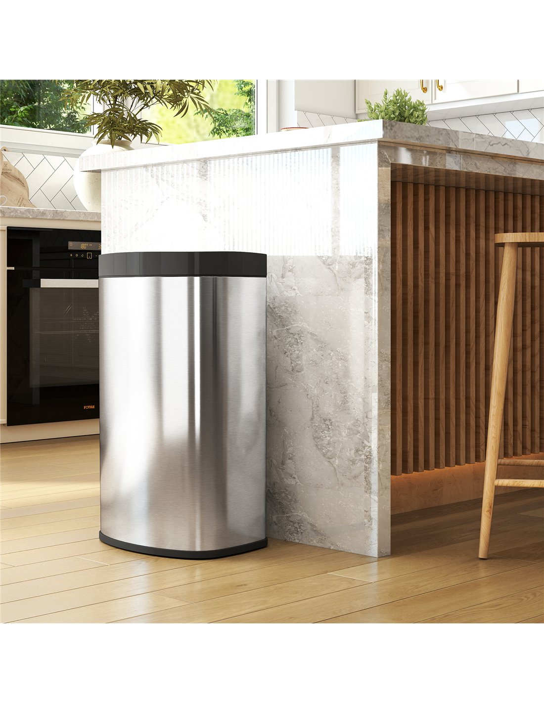 - Large 55L capacity reduces bag changes, with a ring to hide liners