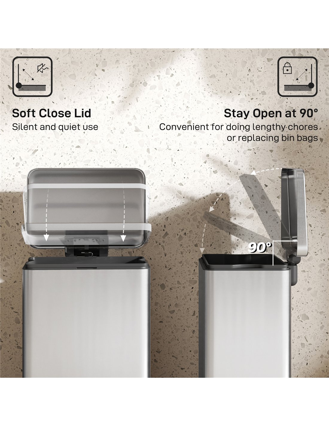 HOMCOM 20L Kitchen Bin with Soft-Close Lid and Stay-Open Function, Stainless Steel Pedal Bin with Removable Inner Bucket for Kitchen, Office, Home, Silver Tone